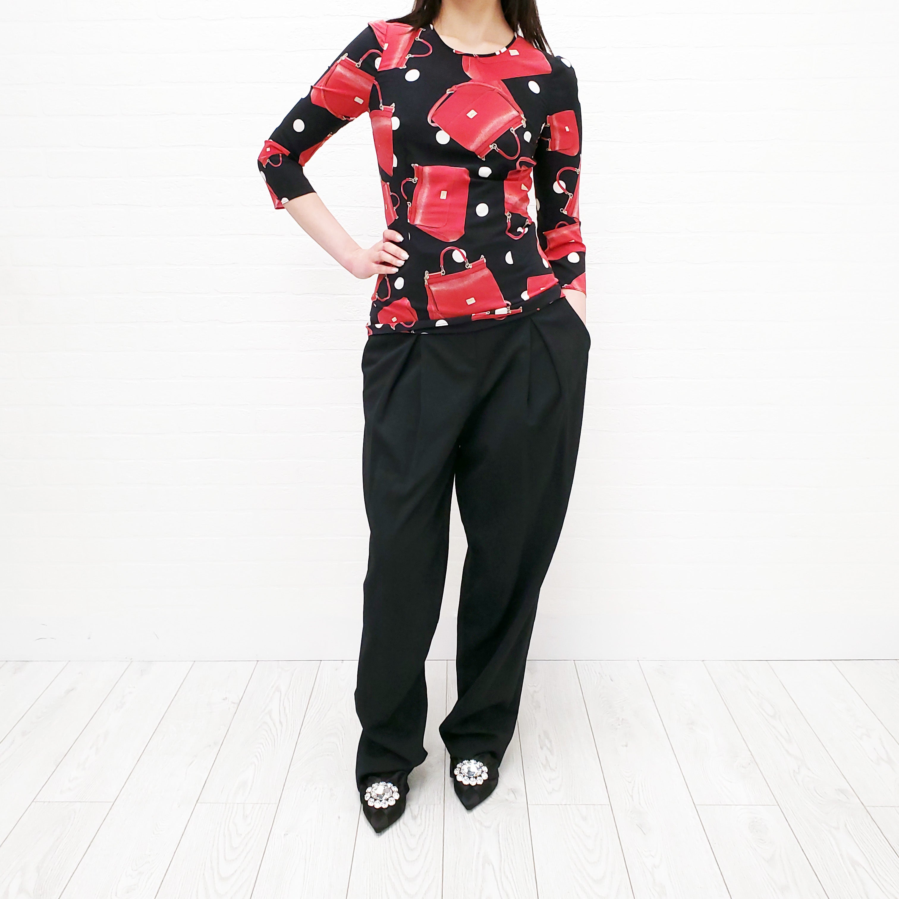 DOLCE & GABBANA SILK SICILY BAG PRINT BLOUSE - SIZE 38