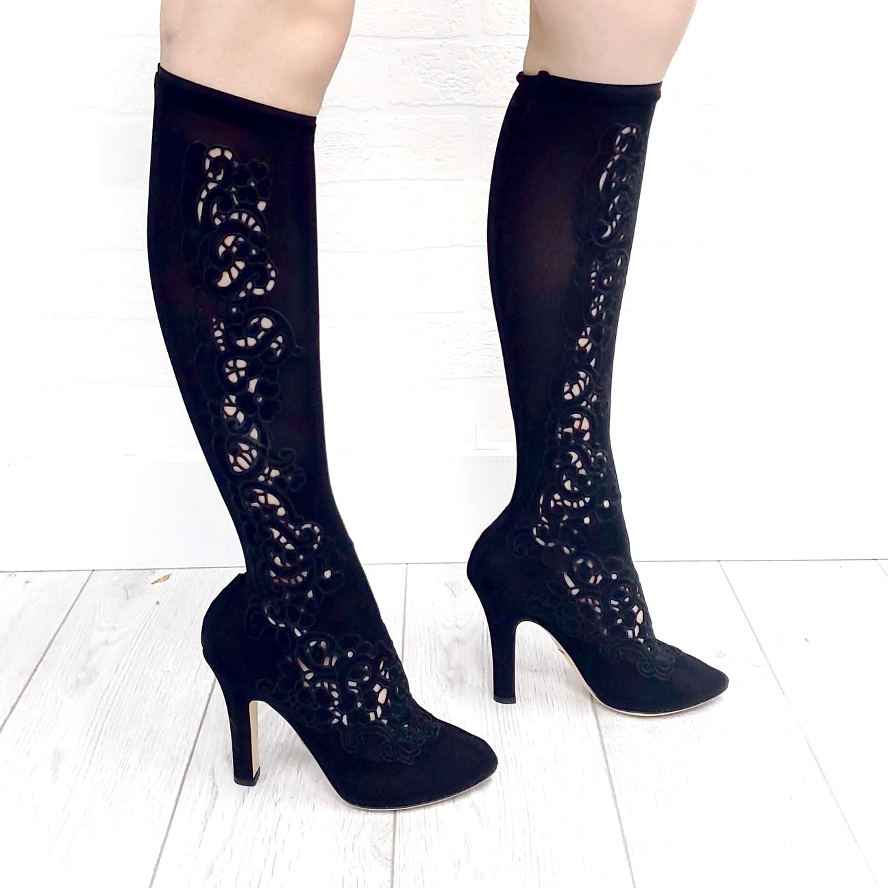 DOLCE & GABBANA LACE SOCK CALF BOOTS - SIZE 37.5