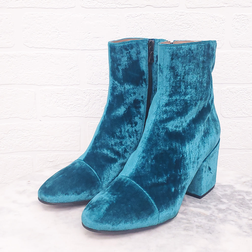 DRIES VAN NOTEN BLUE VELVET BOOTS - SIZE 37.5