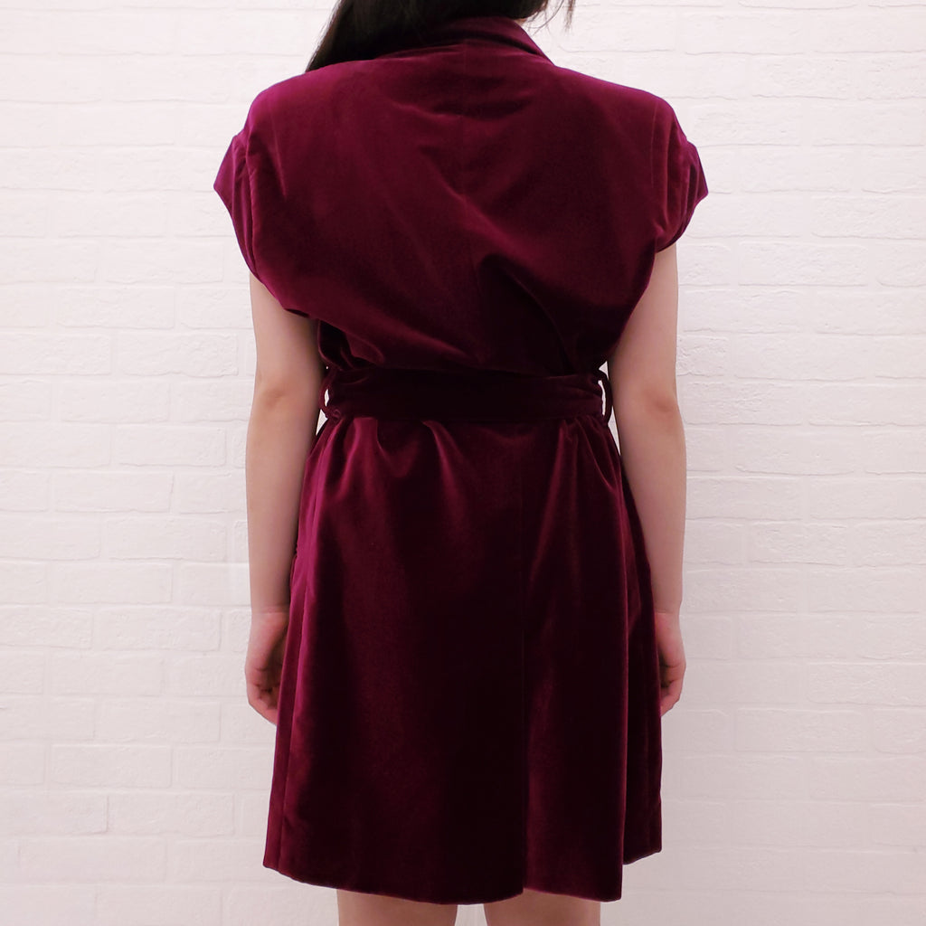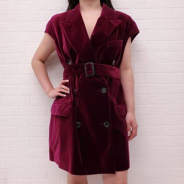 DRIES VAN NOTEN BURGUNDY VELVET LONG DOUBLE BREASTED VEST WITH BELT - SIZE 40