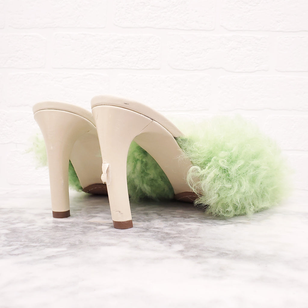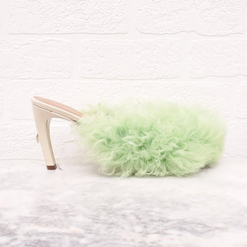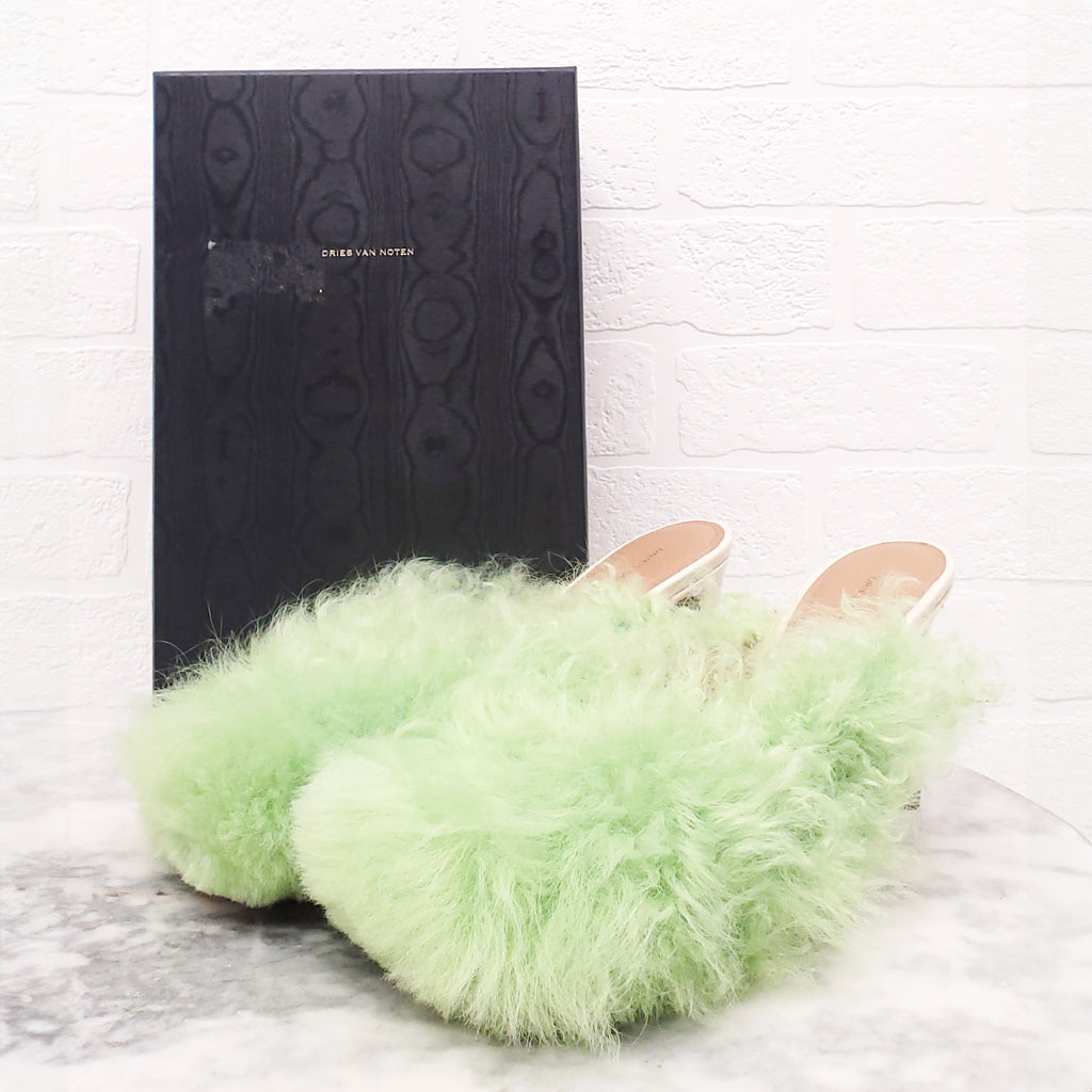 DRIES VAN NOTEN GREEN FUR MULES - SIZE 41