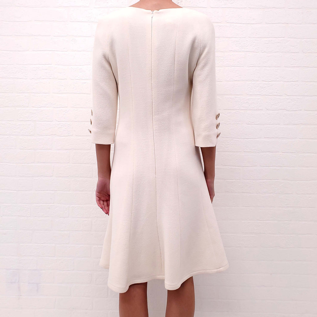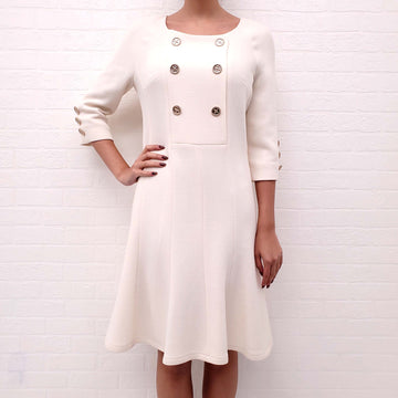EDWARD ACHOUR PARIS CREAM DOUBLE BREASTED THREE QUARTER LENGTH SLEEVE DRESS - SIZE 40