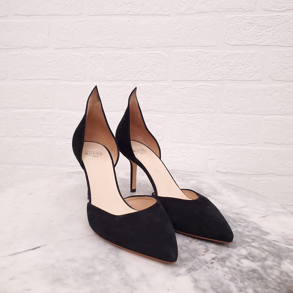 FRANCESCO RUSSO BLACK SUEDE HEELS - SIZE 38