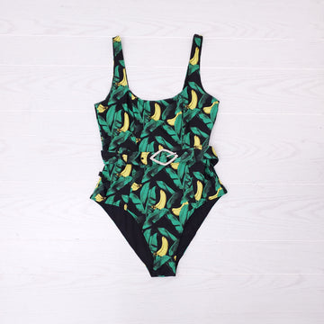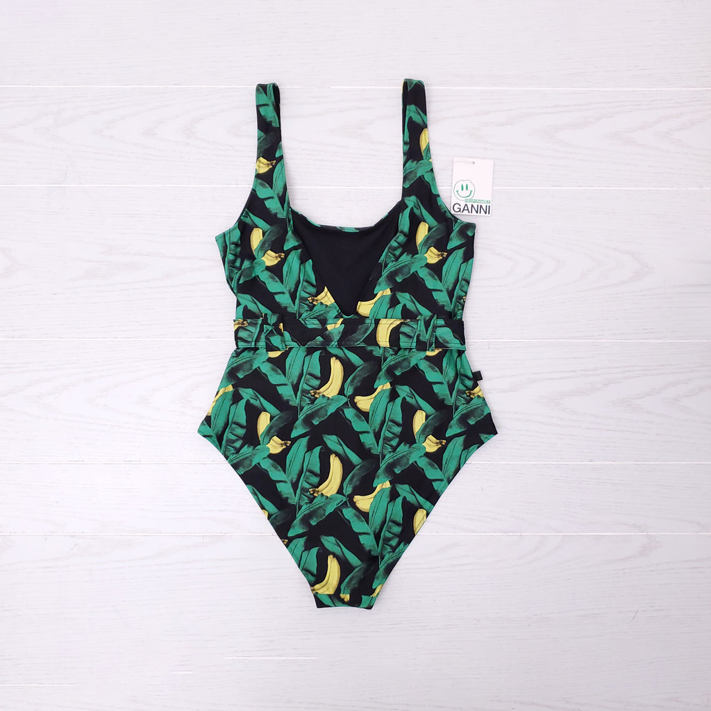 GANNI BANANA PRINT SWIMSUIT WITH BELT - SIZE 42