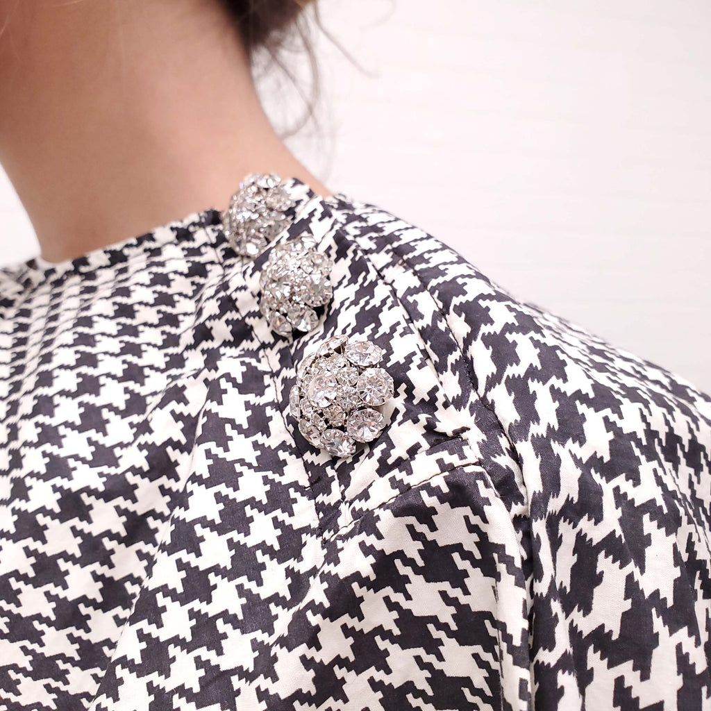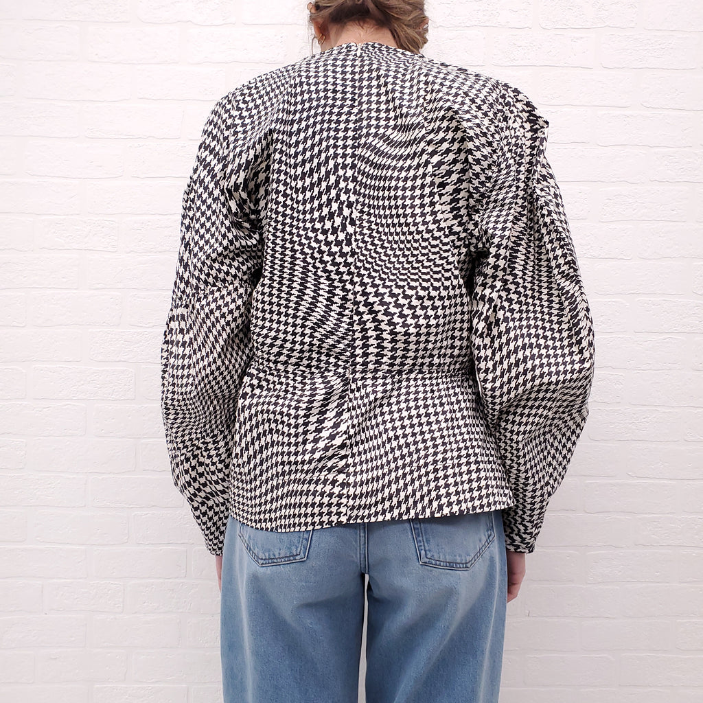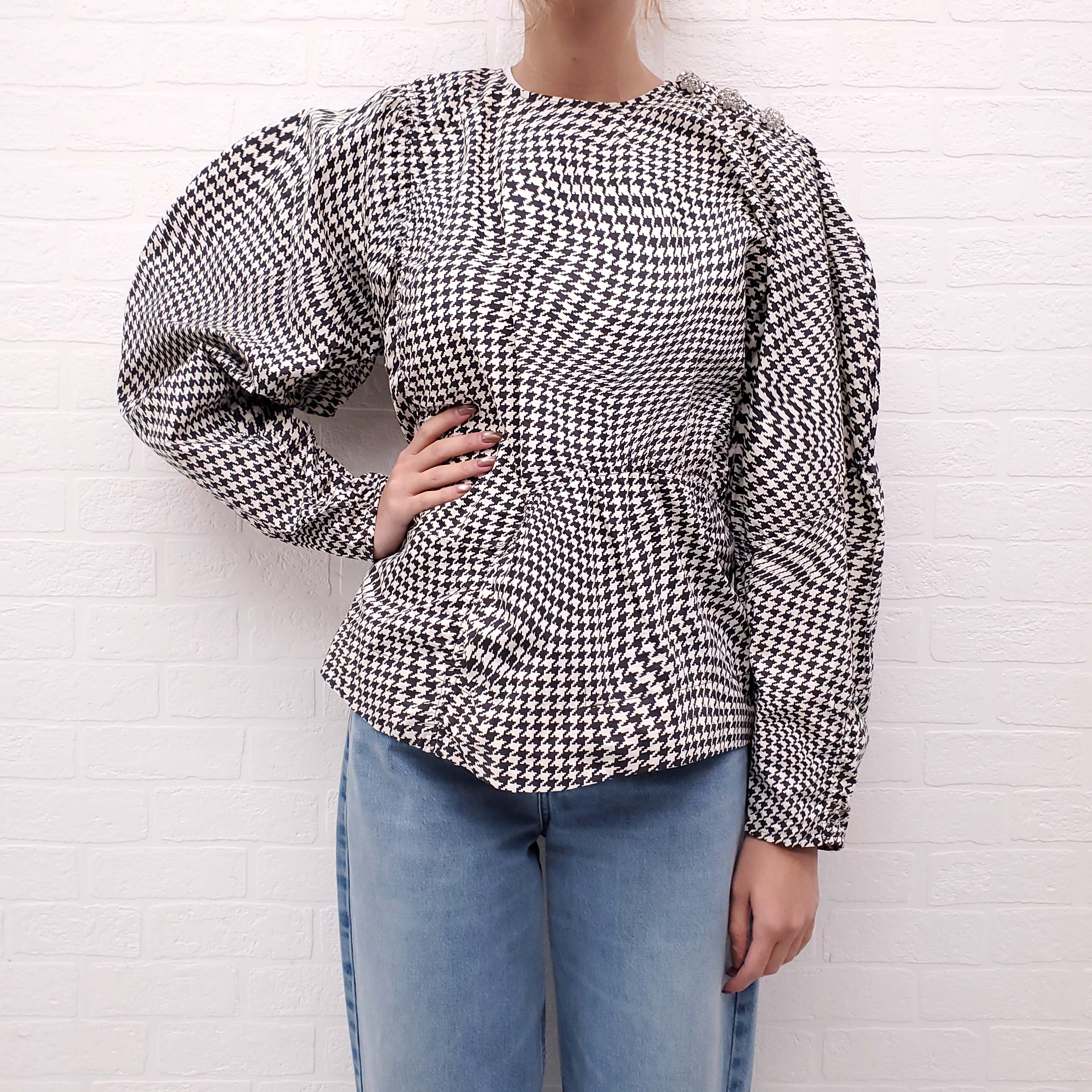 GANNI HOUNDSTOOTH PEPLUM BLOUSE WITH CRYSTAL BUTTONS - SIZE 44