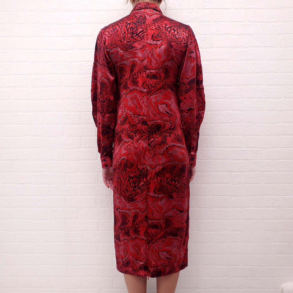 GANNI RED SNAKE PRINT LONG SLEEVE DRESS - SIZE 32