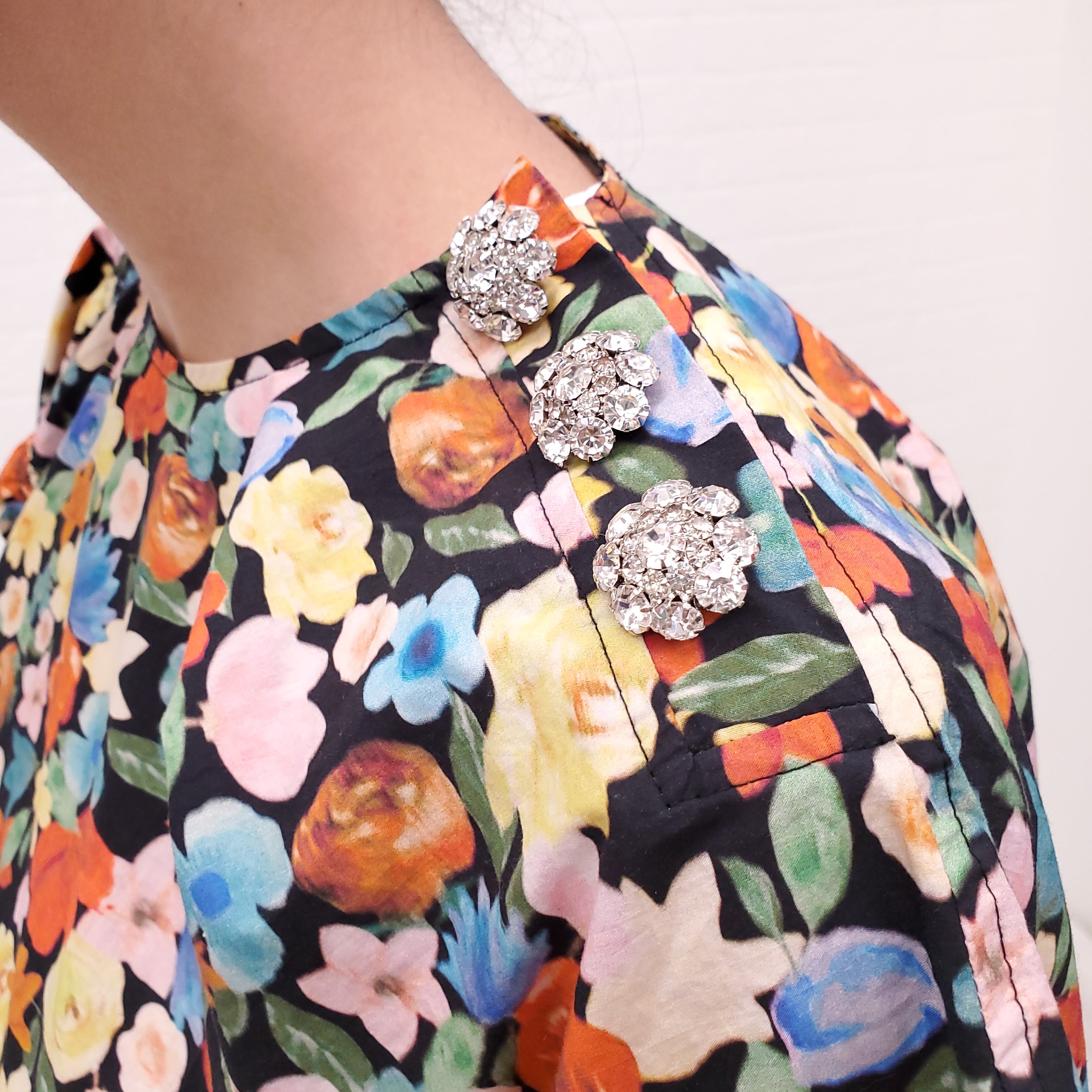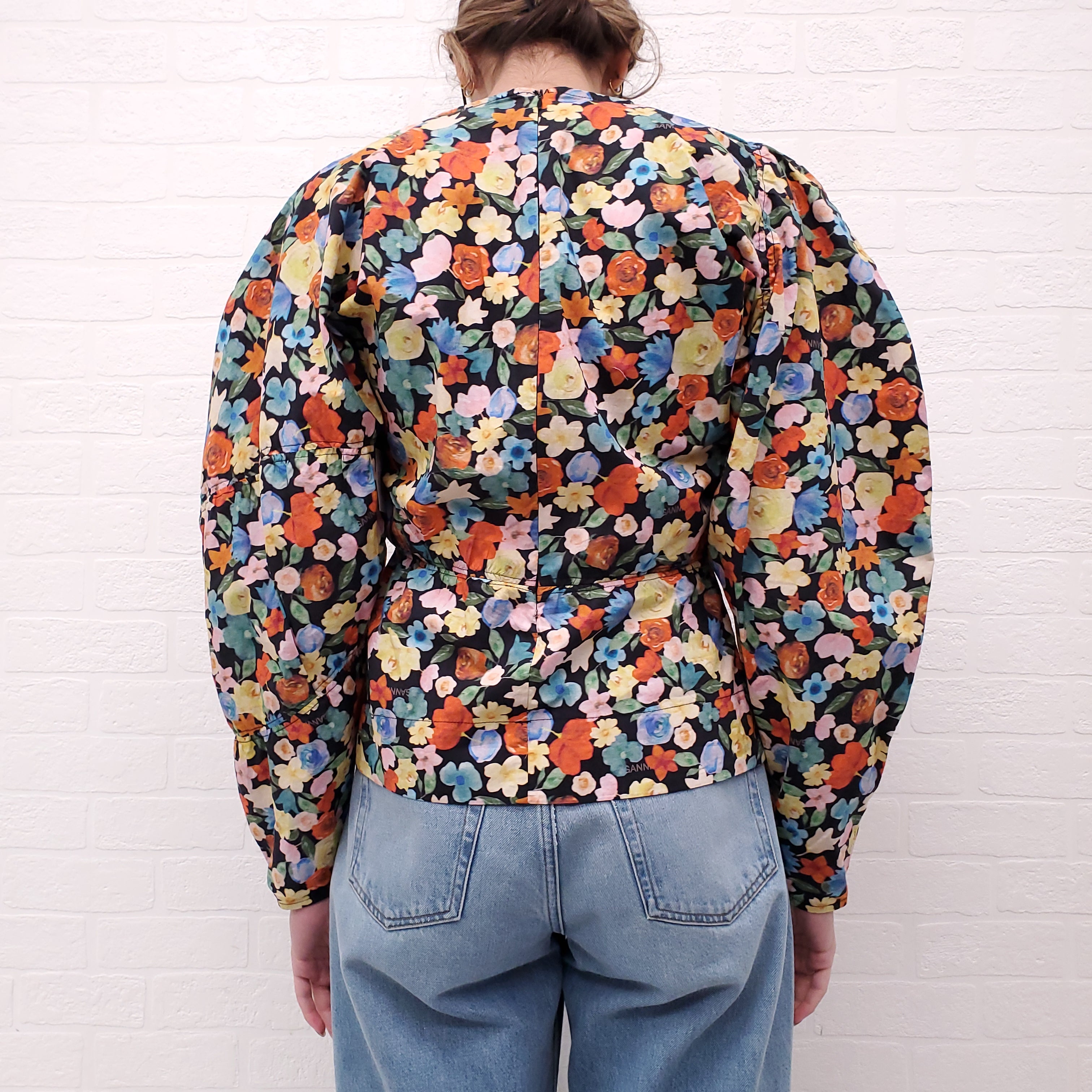GANNI FLORAL PRINTED POPLIN BLOUSE WITH CRYSTAL BUTTON - SIZE 36