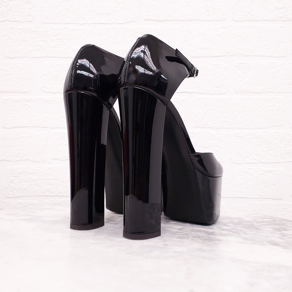 GIUSEPPE ZANOTTI BLACK PATENT 'BEBE 120MM' PLATFORM PUMPS - SIZE 37