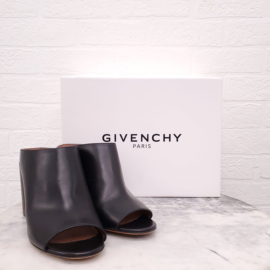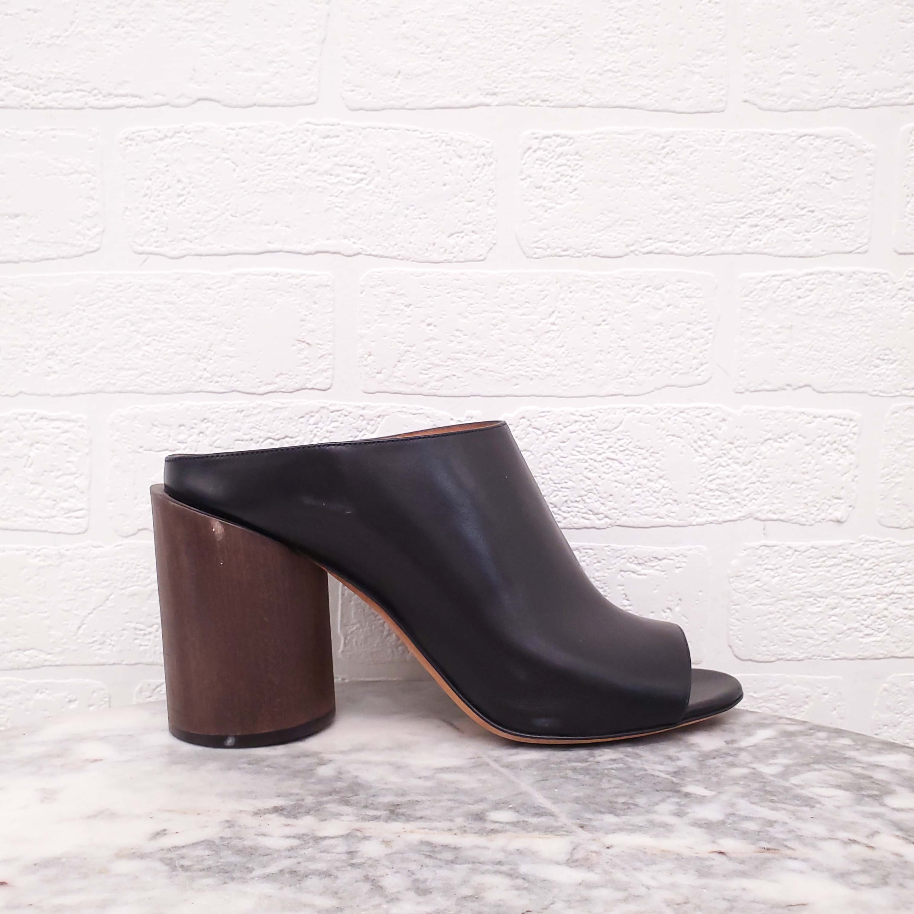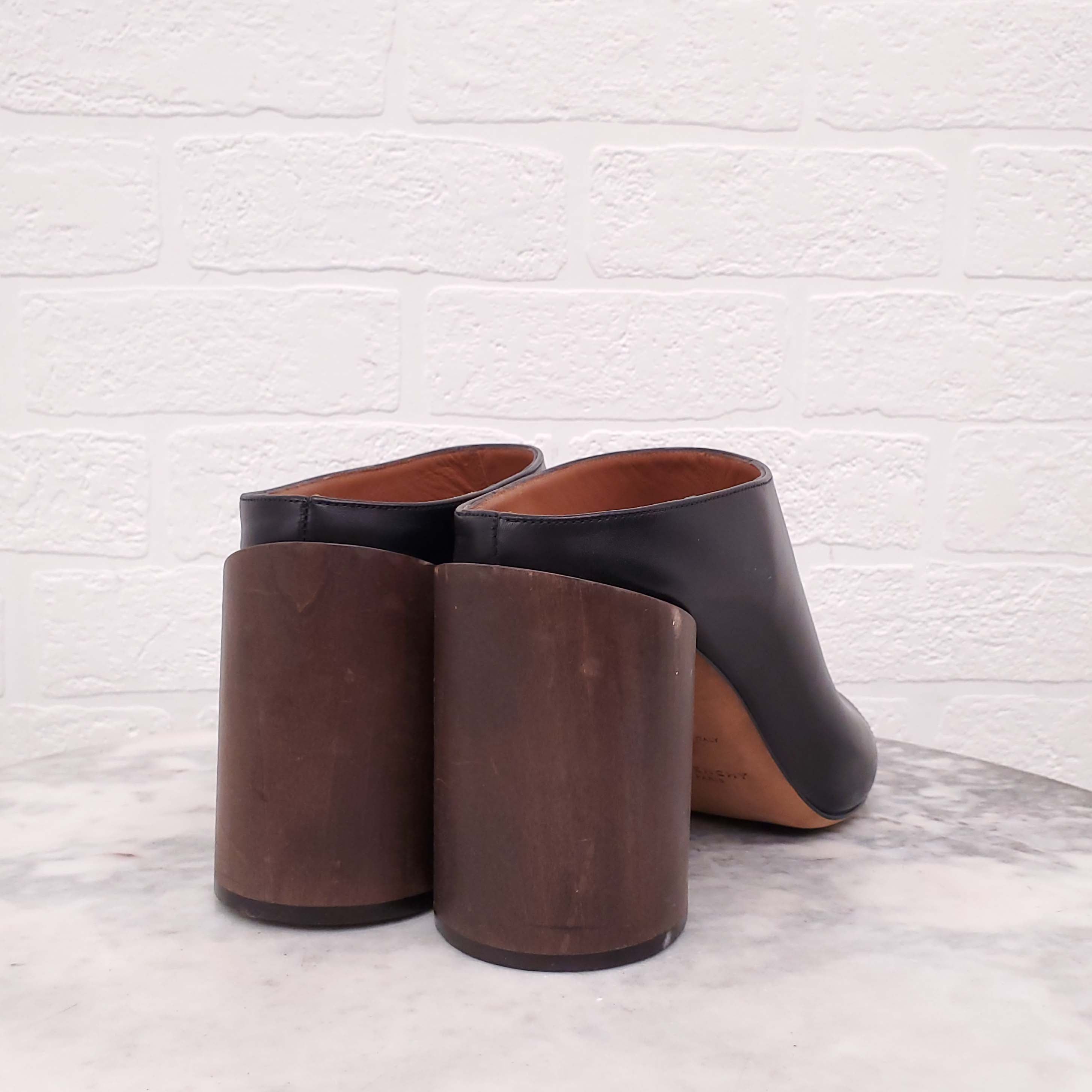 GIVENCHY BLACK LEATHER 'EDGY' MULES WITH WOOD BLOCK HEEL - SIZE 41