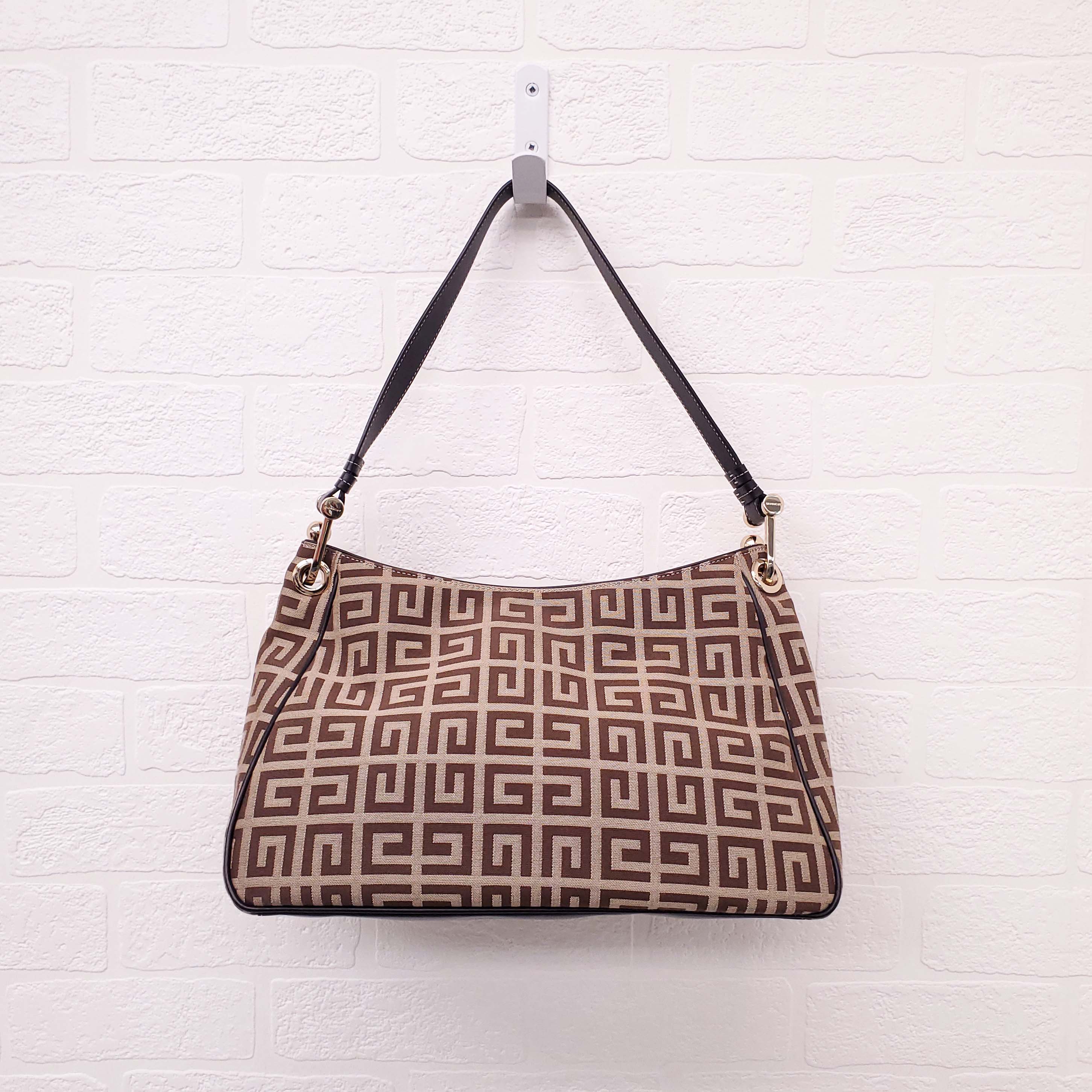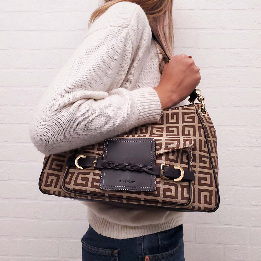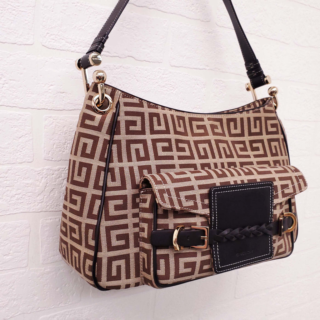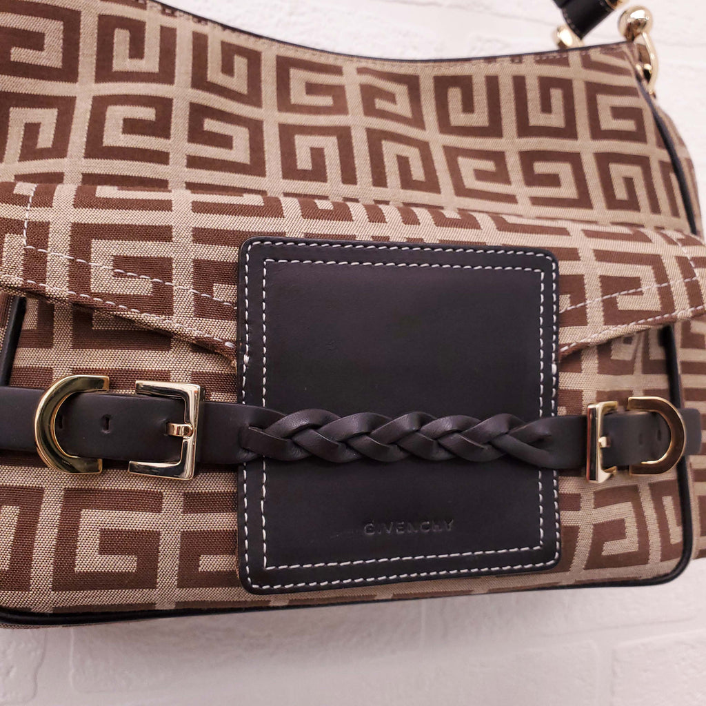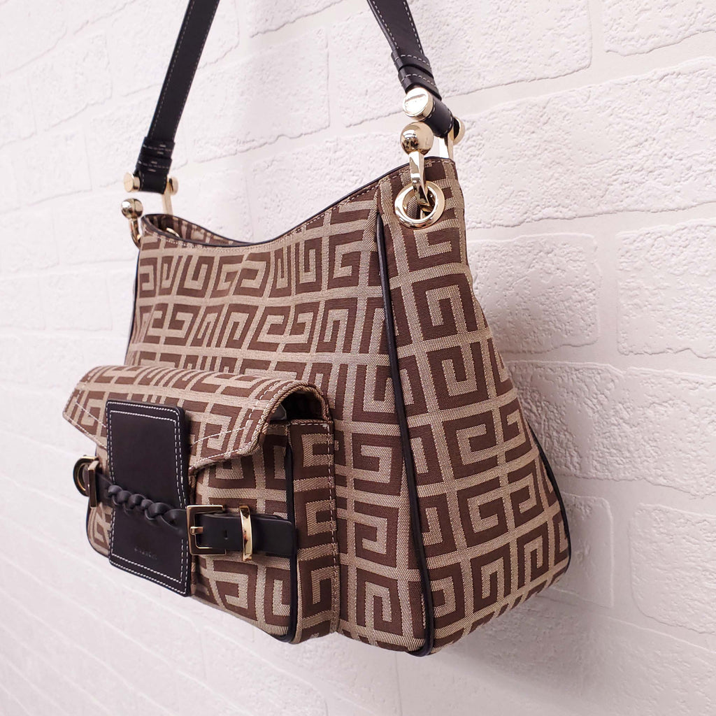 GIVENCHY KHAKI CANVAS LOGO SHOULDER BAG WITH POCKET