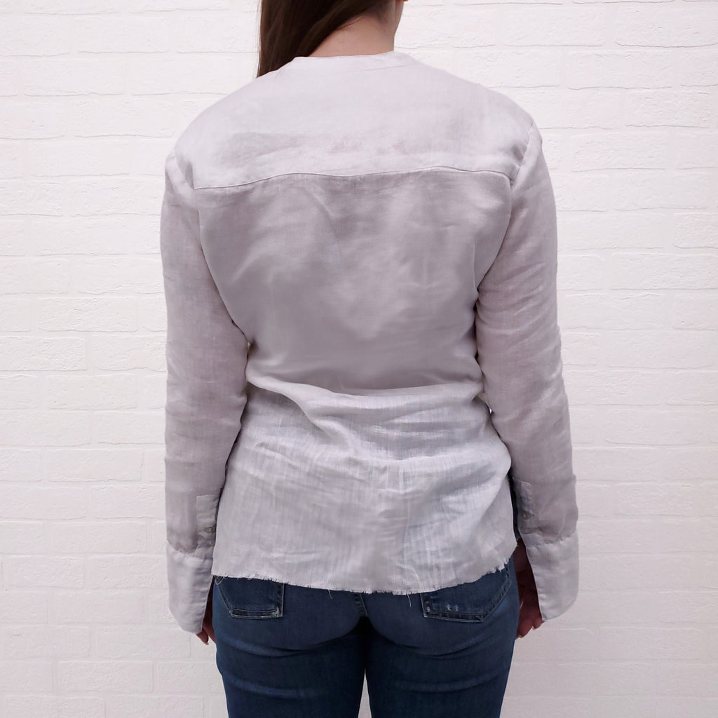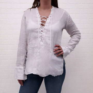 GREG LAUREN WHITE LINEN LACE UP BLOUSE - SIZE 2/M