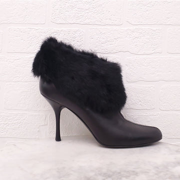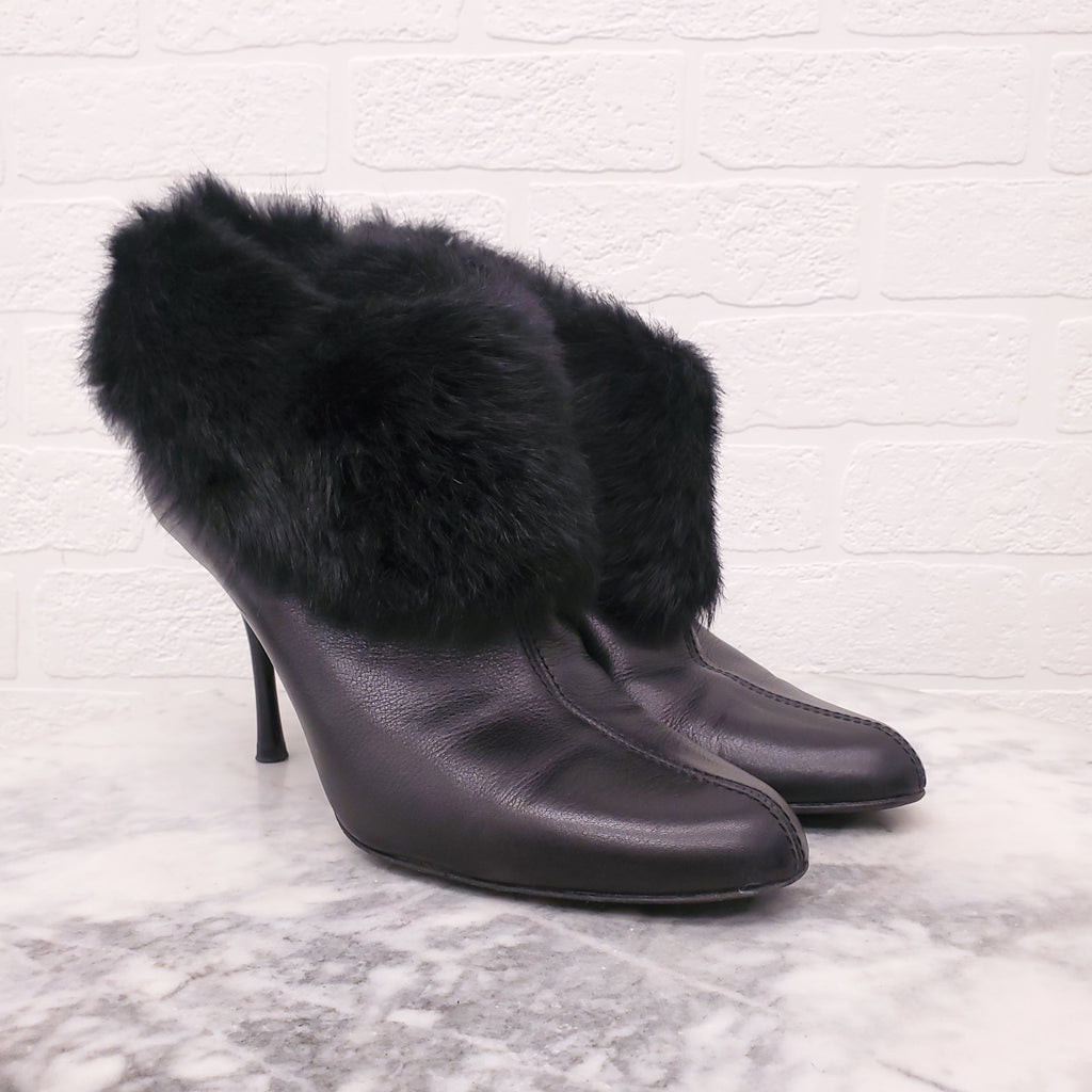 GUCCI BLACK LEATHER BOOTIES WITH FUR - SIZE 10B