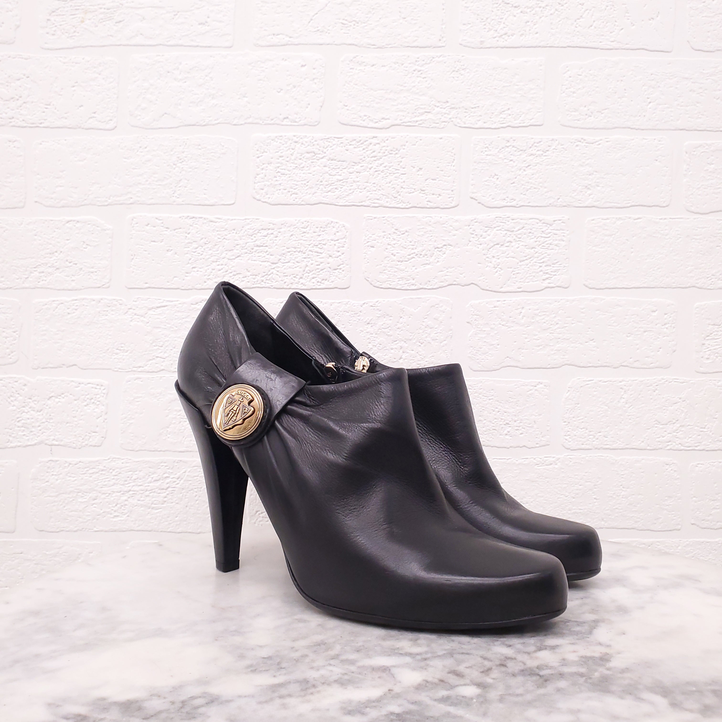 GUCCI BLACK LEATHER BOOTIES WITH GOLD EMBLEM - SIZE 40C