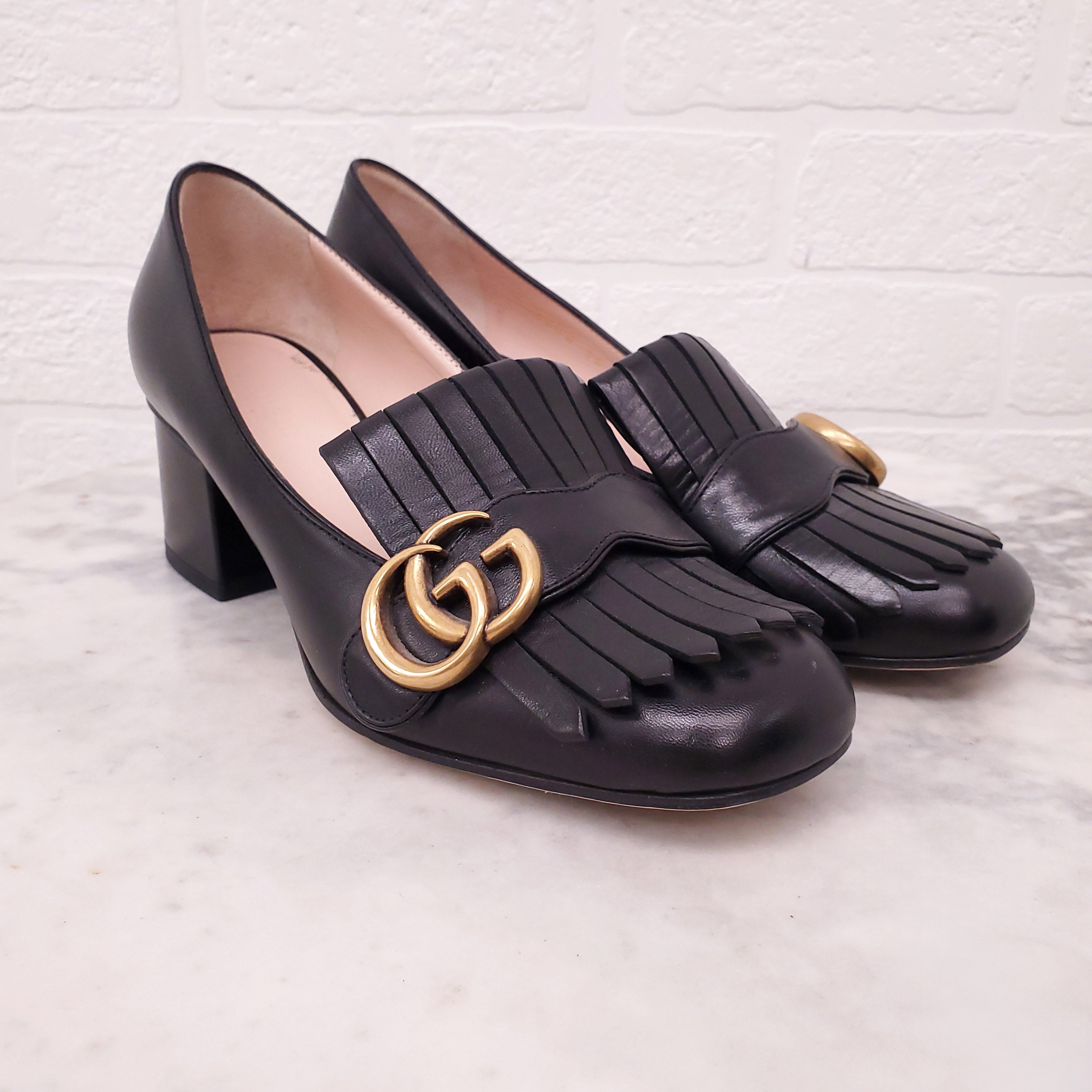GUCCI BLACK MARMONT BLOCK HEELS - SIZE 36