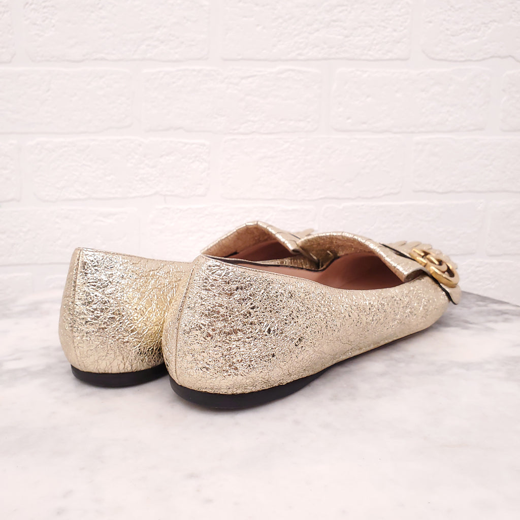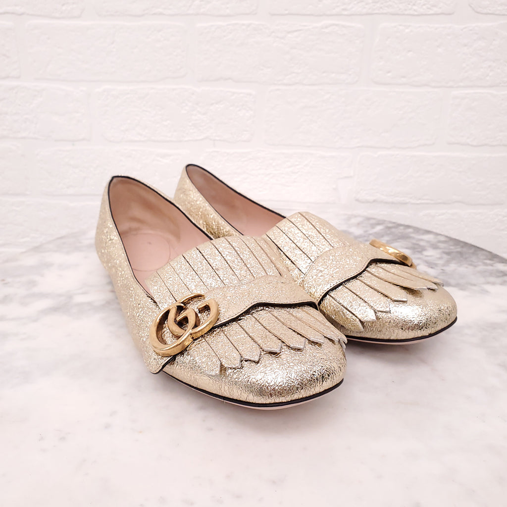 GUCCI GOLD MARMONT FRINGE LOAFERS - SIZE 40