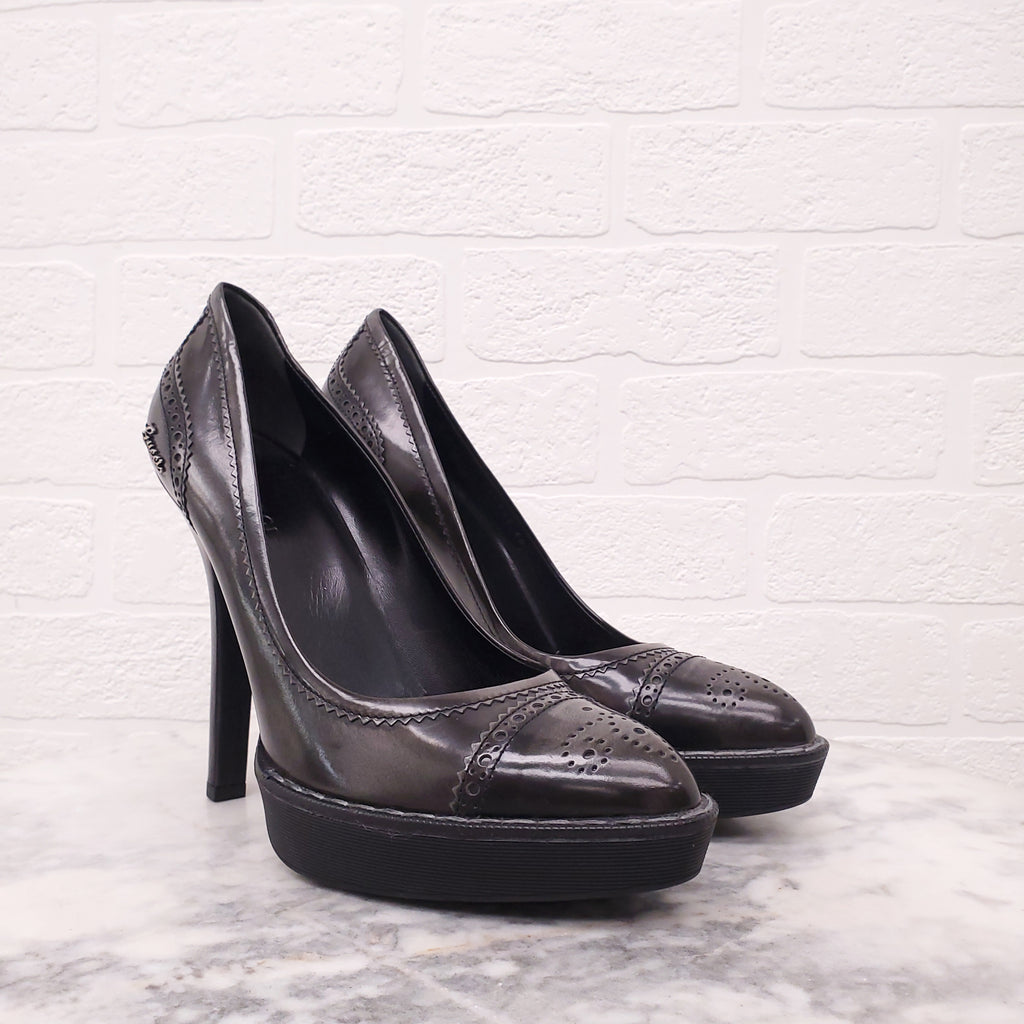 GUCCI GREY LEATHER SPECTATOR HEELS - SIZE 40