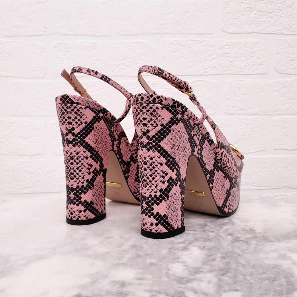 GUCCI PINK SNAKESKIN PLATFORM HEELS - SIZE 38.5