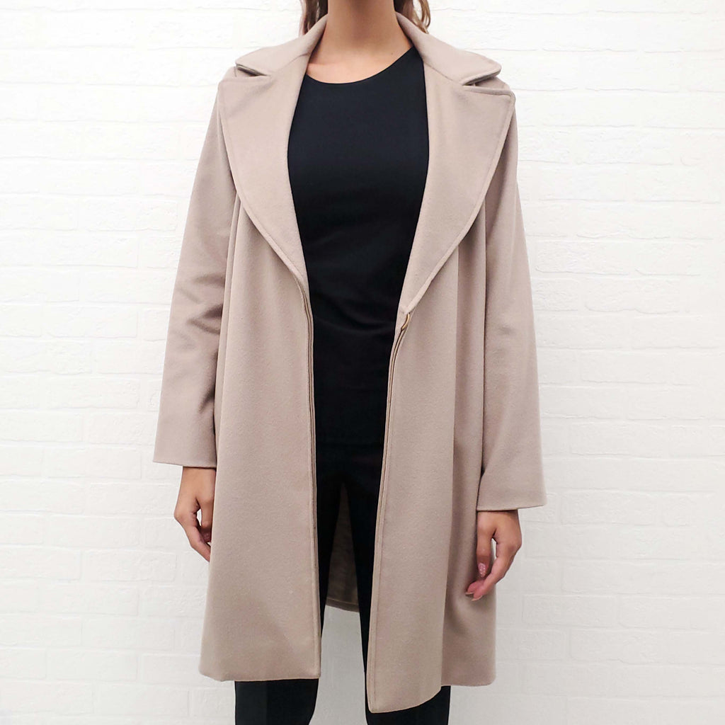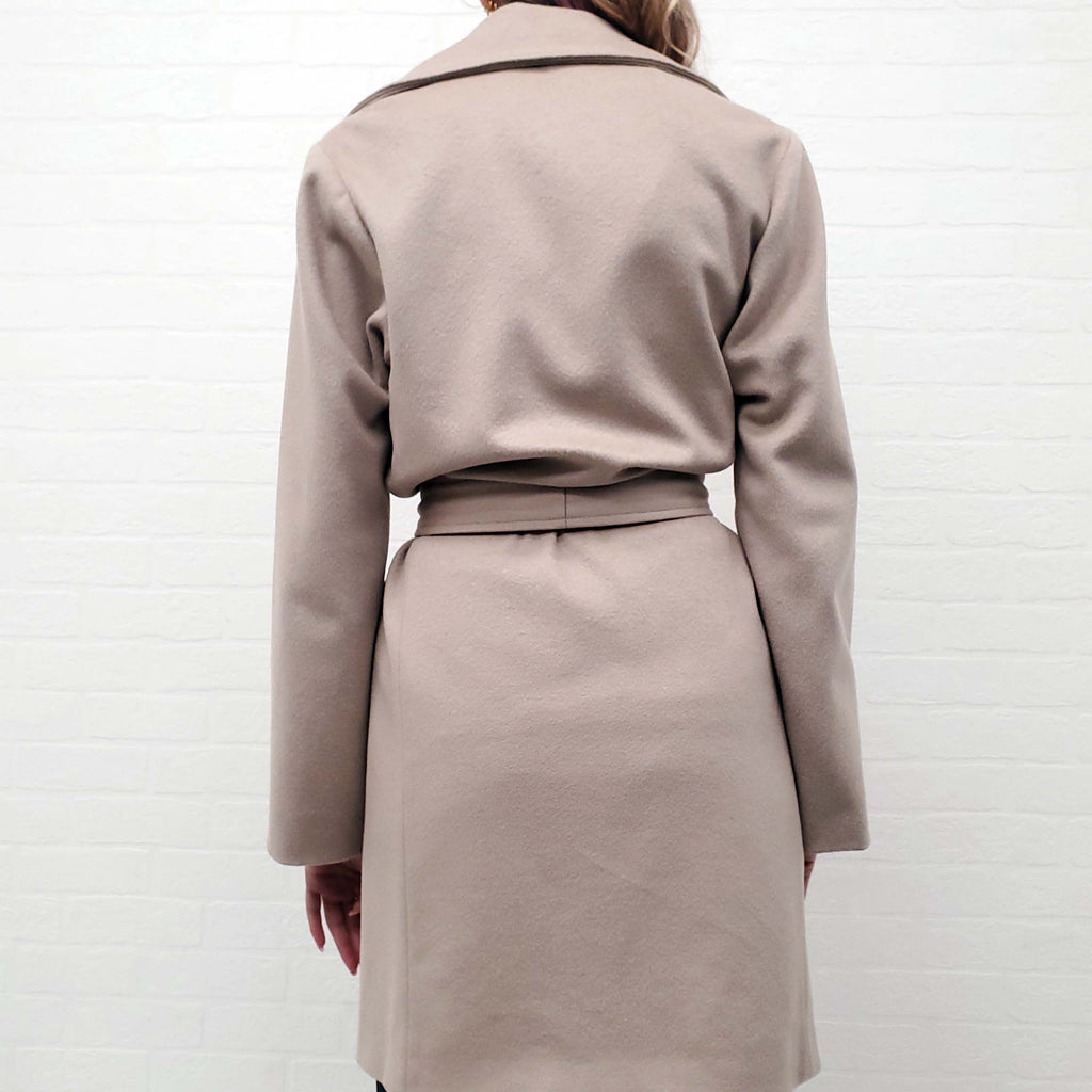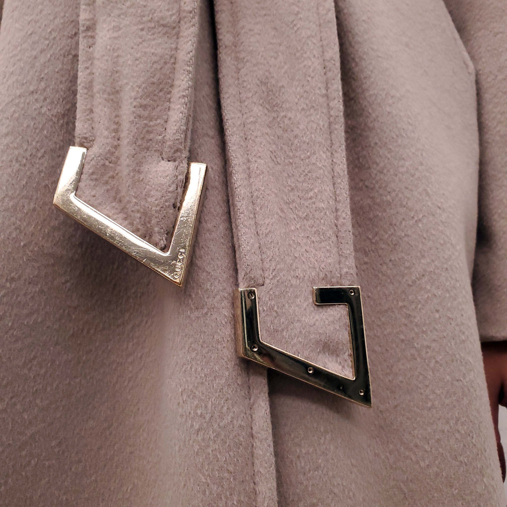 GUCCI TAUPE WOOL JACKET WITH LOGO BELT - SIZE 40