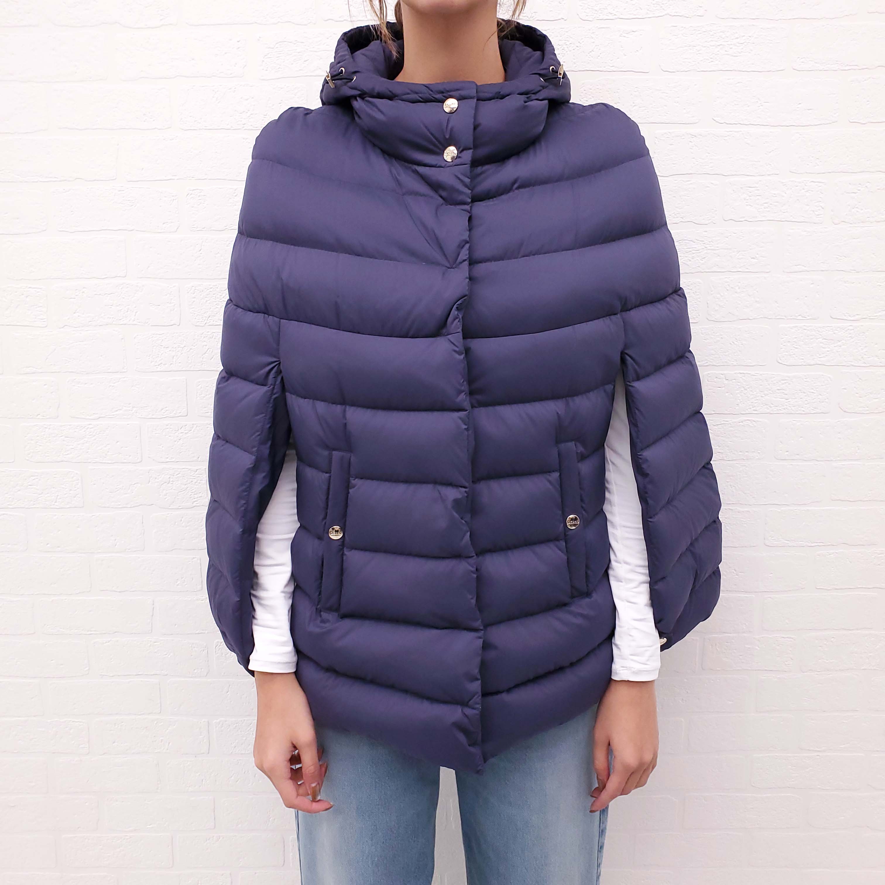 HERNO NAVY PUFFER CAPE - SIZE 42
