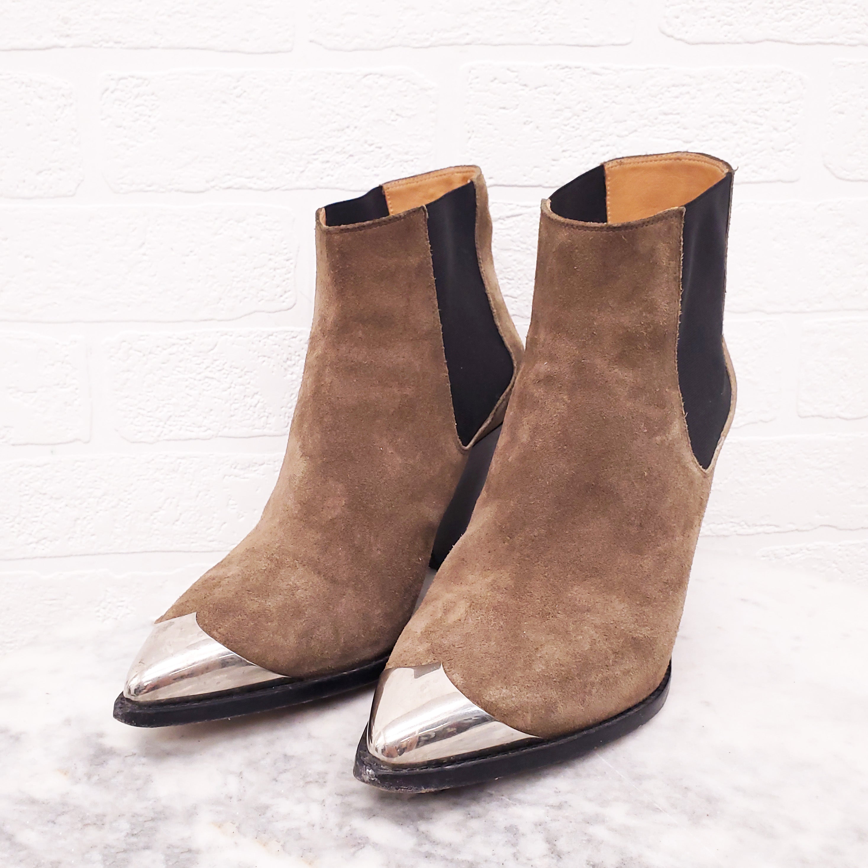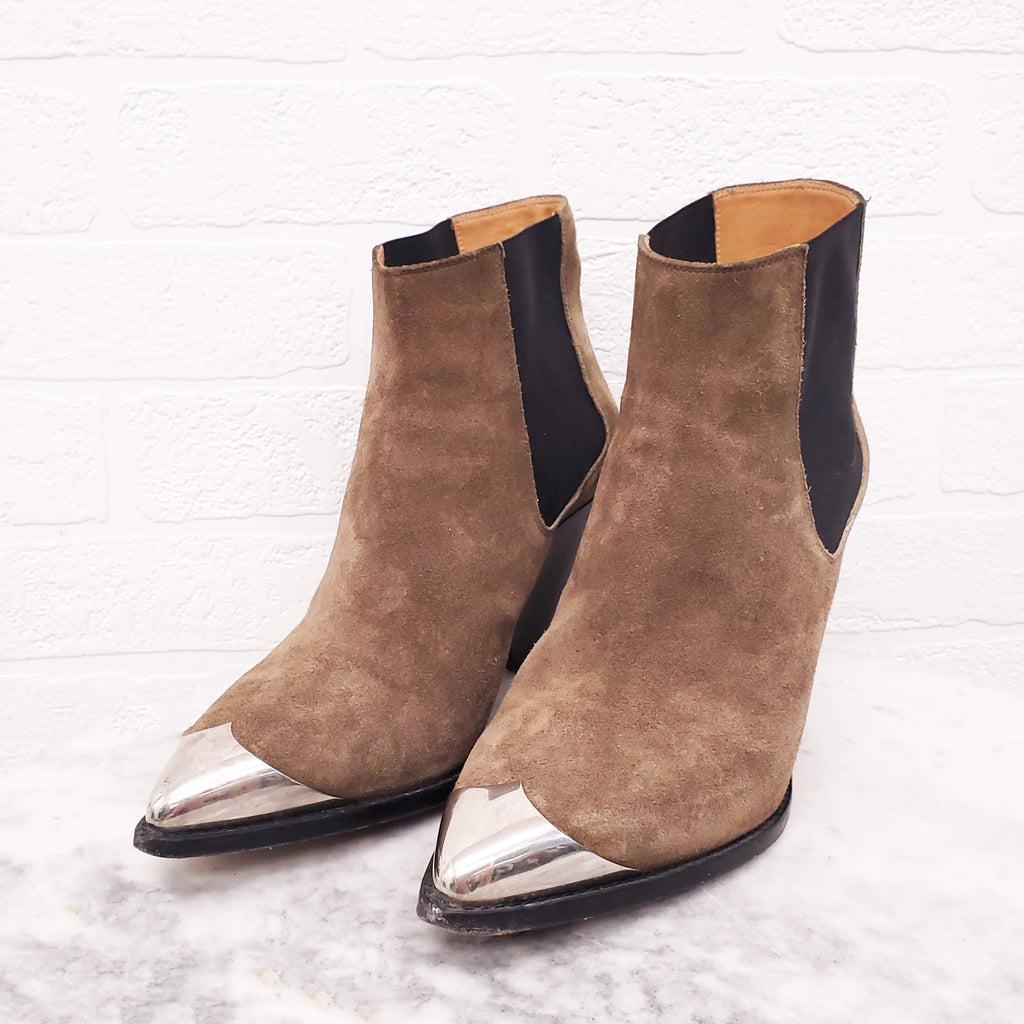 ISABEL MARANT TAUPE SUEDE BOOTS WITH SILVER CAP TOE - SIZE 39