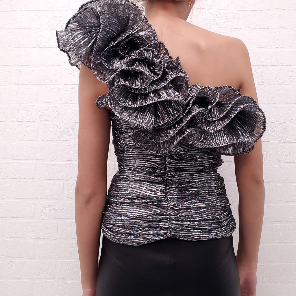 ISABEL MARANT 'TRUDIE' SILVER RUFFLE TOP - SIZE 36