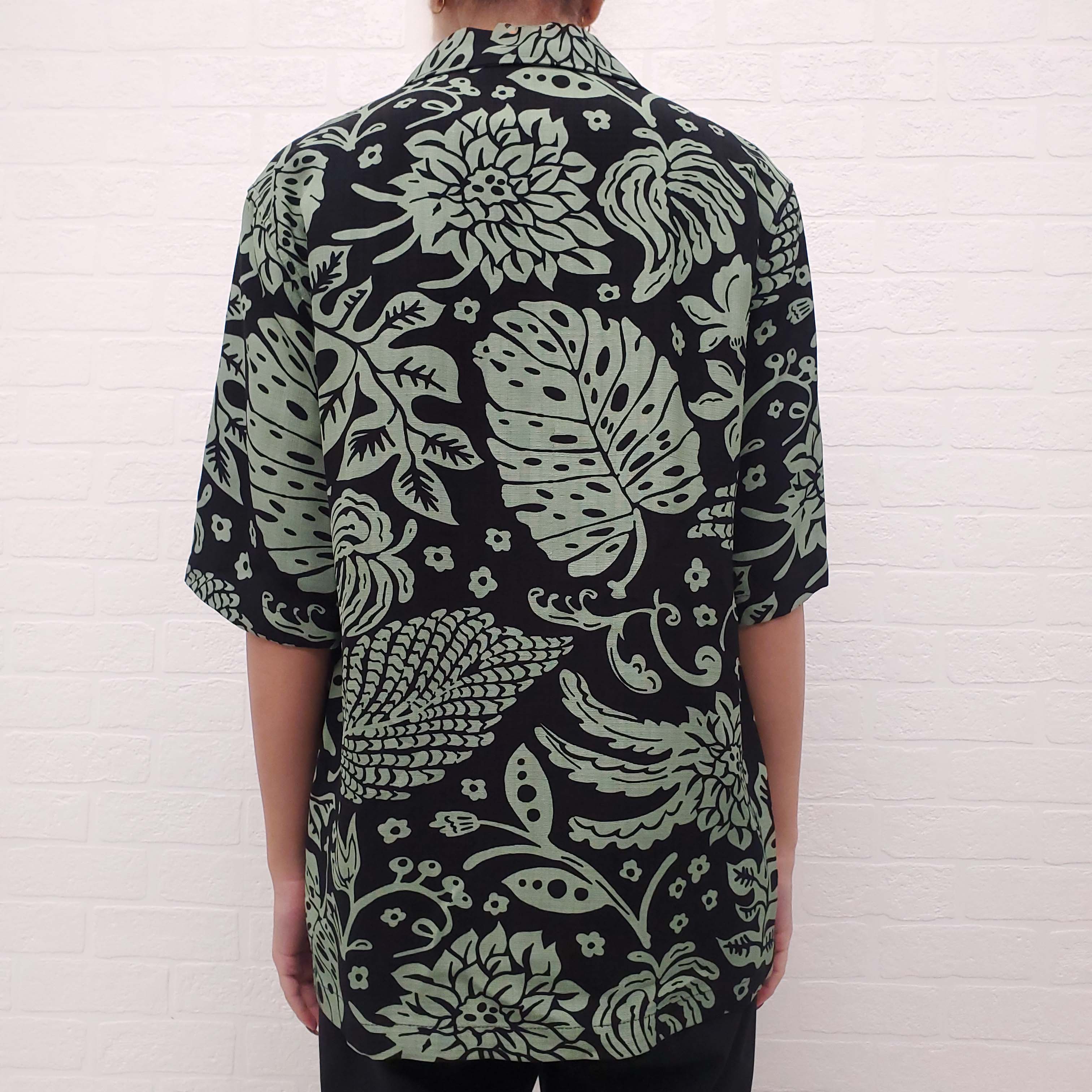 JIL SANDER UNISEX GREEN AND BLACK PATTERNED HAWAIIAN SHIRT - SIZE 36