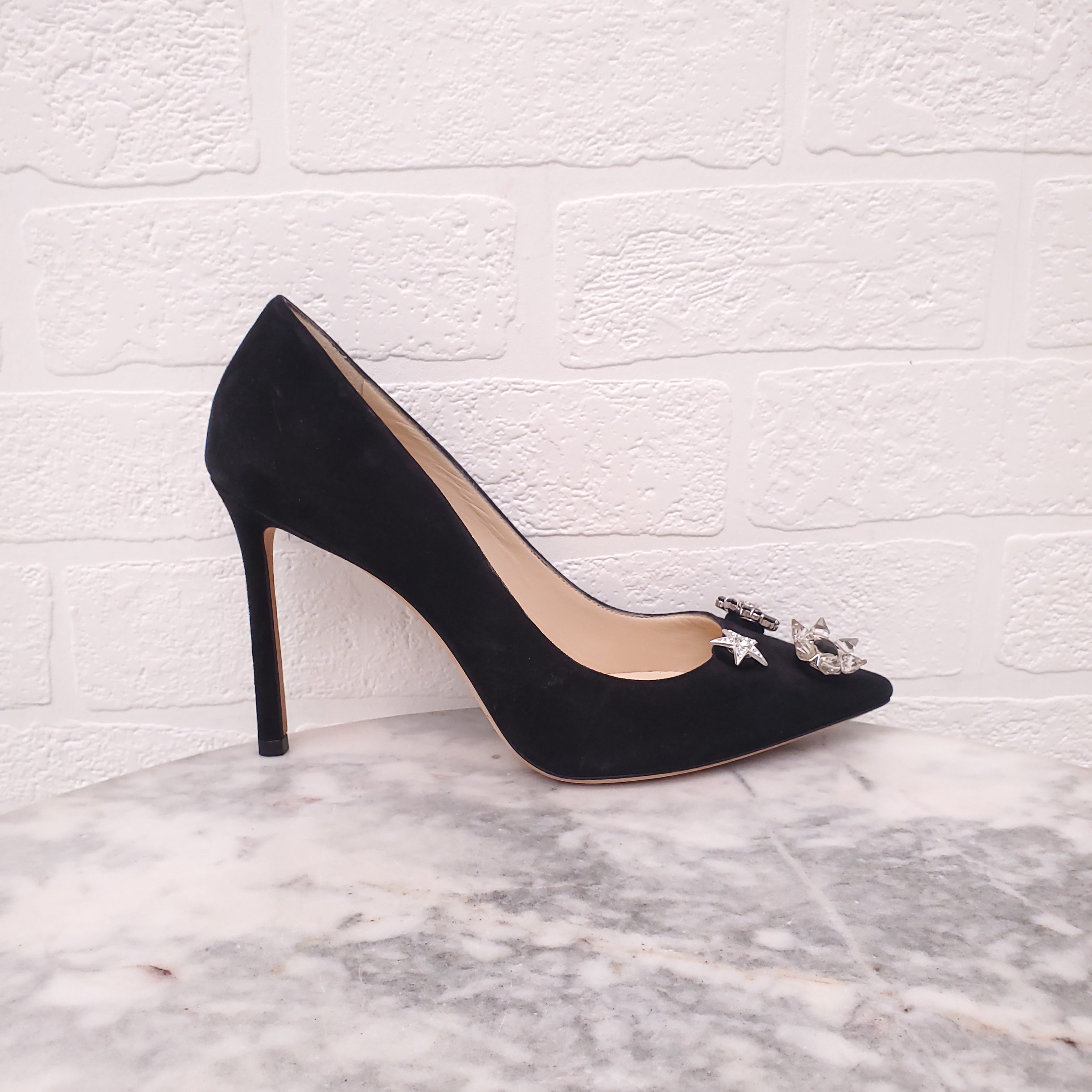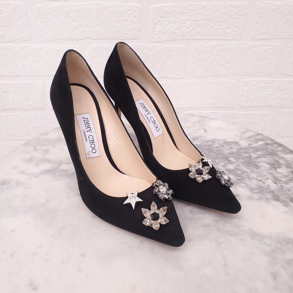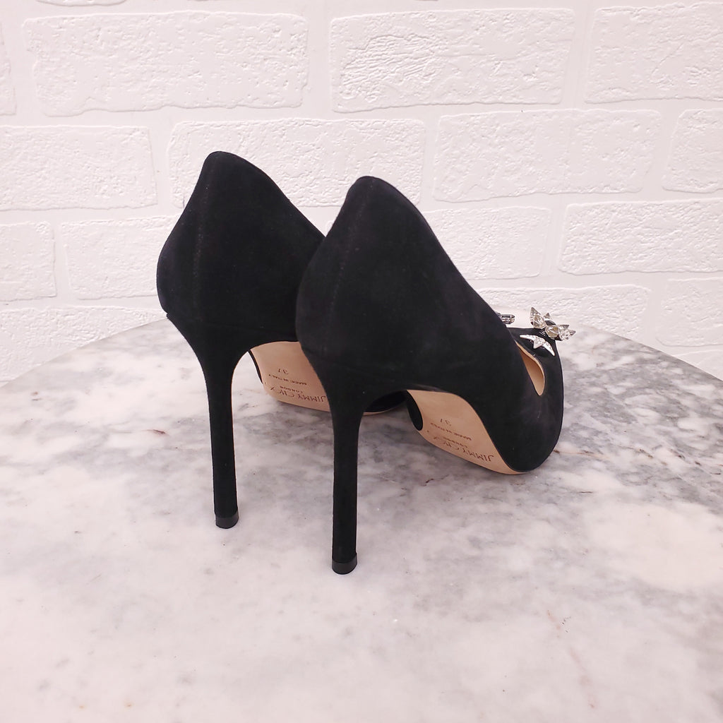 JIMMY CHOO SUEDE HEELS WITH CRYSTAL HEELS - SIZE 37