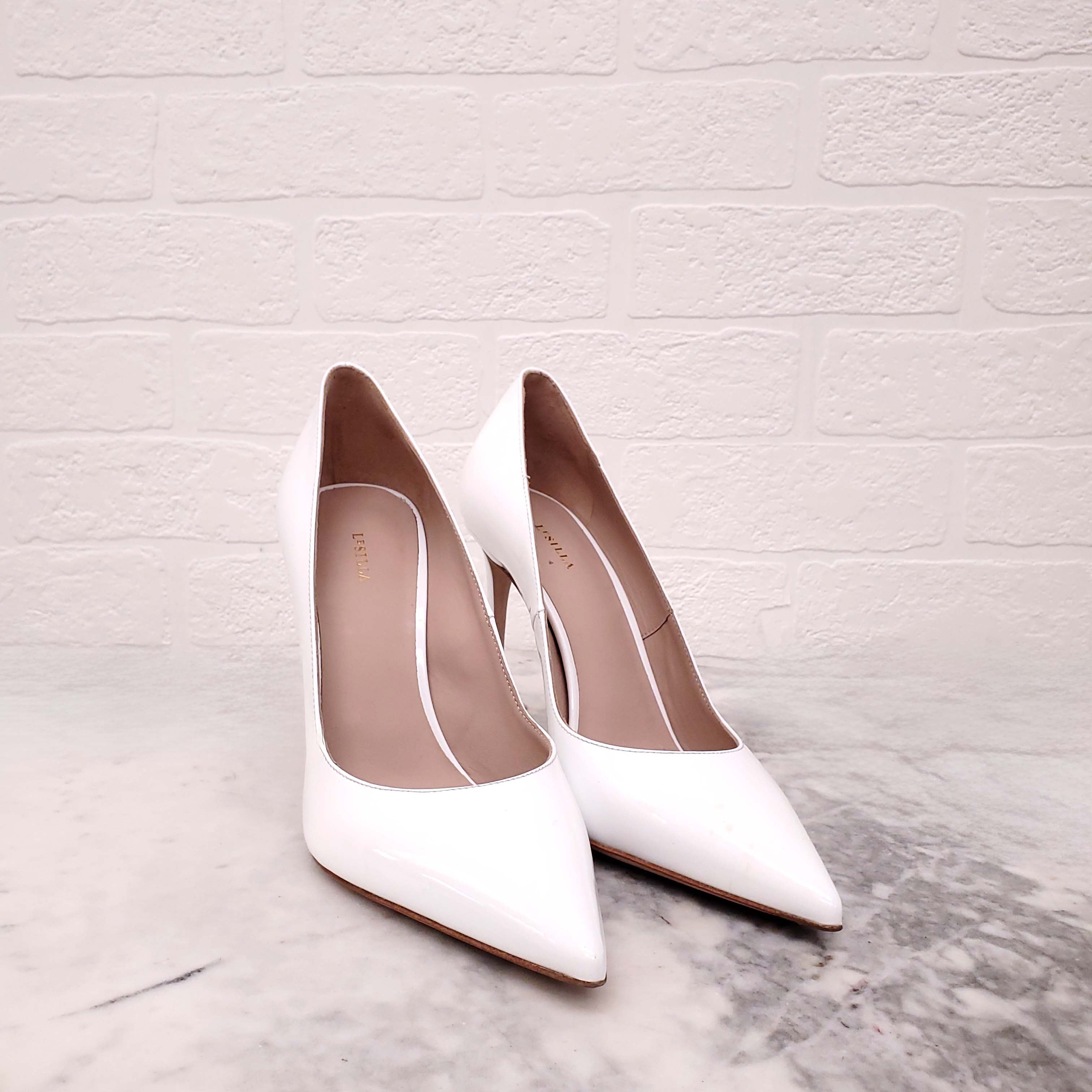 LE SILLA WHITE PATENT LEATHER HEELS - SIZE 38.5