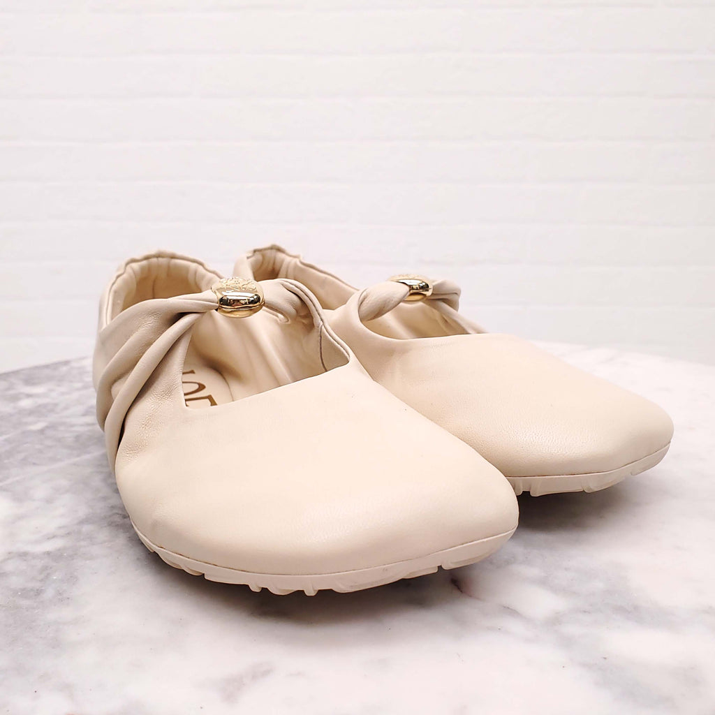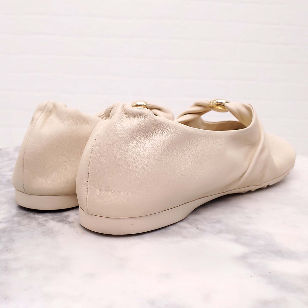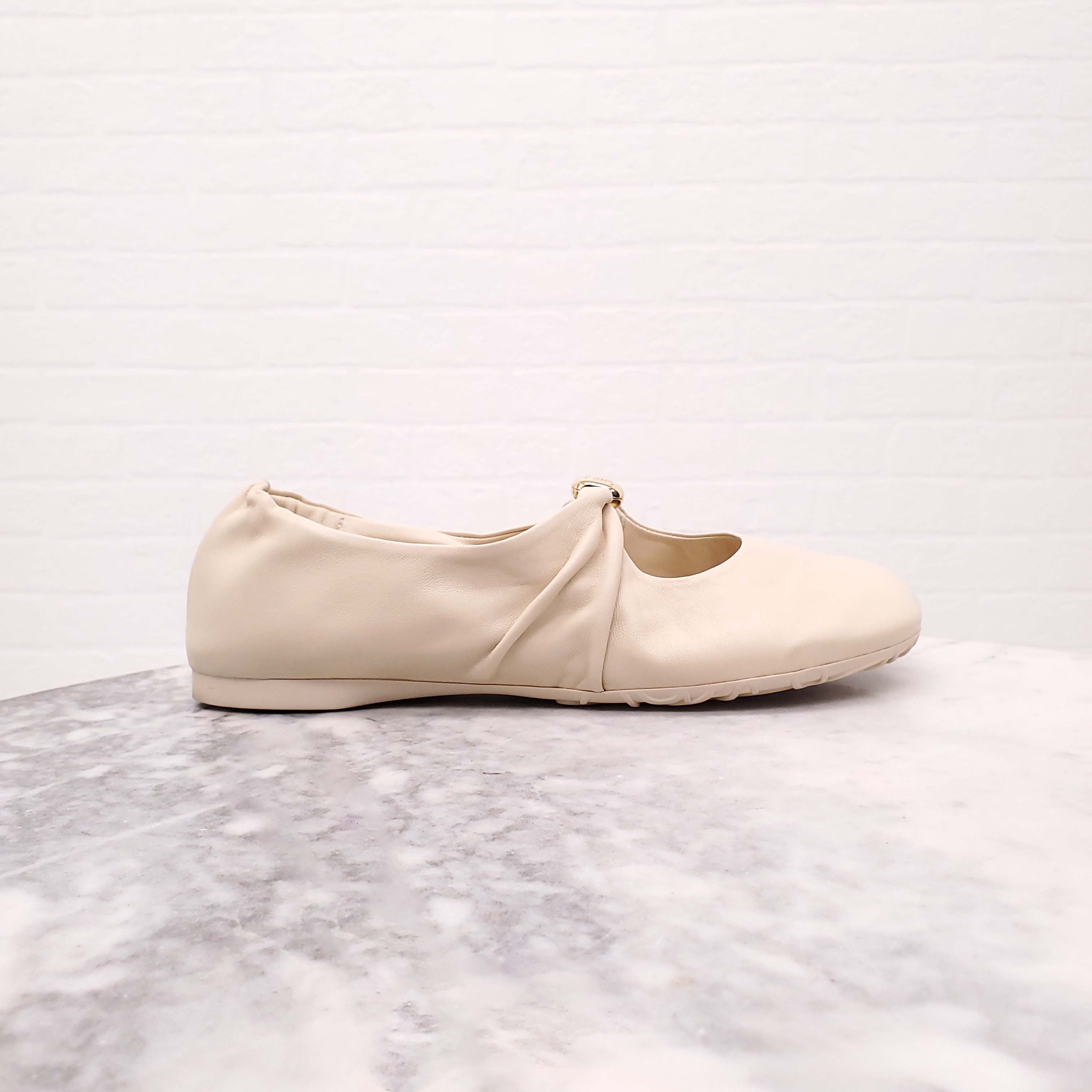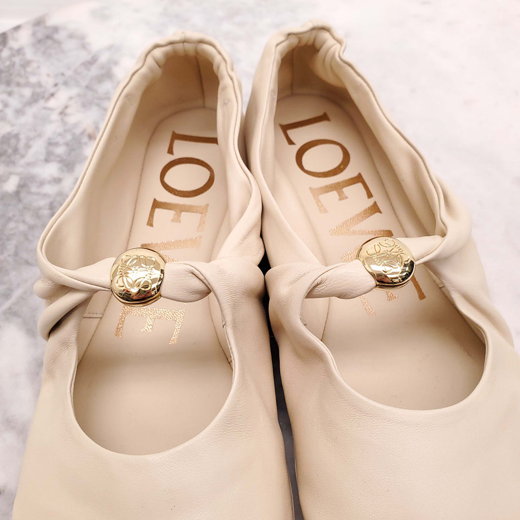 LOEWE CREAM SOFT LEATHER MARY-JANE LOGO FLATS - SIZE 36