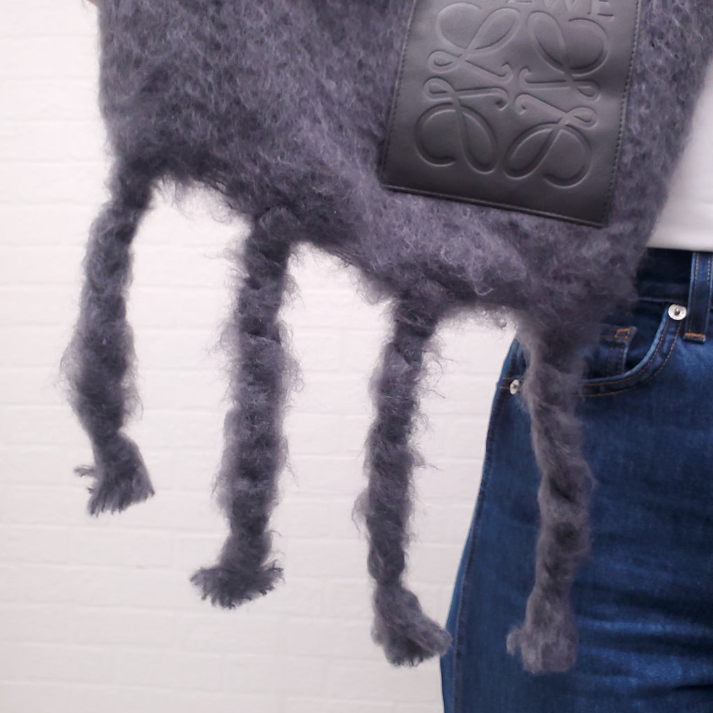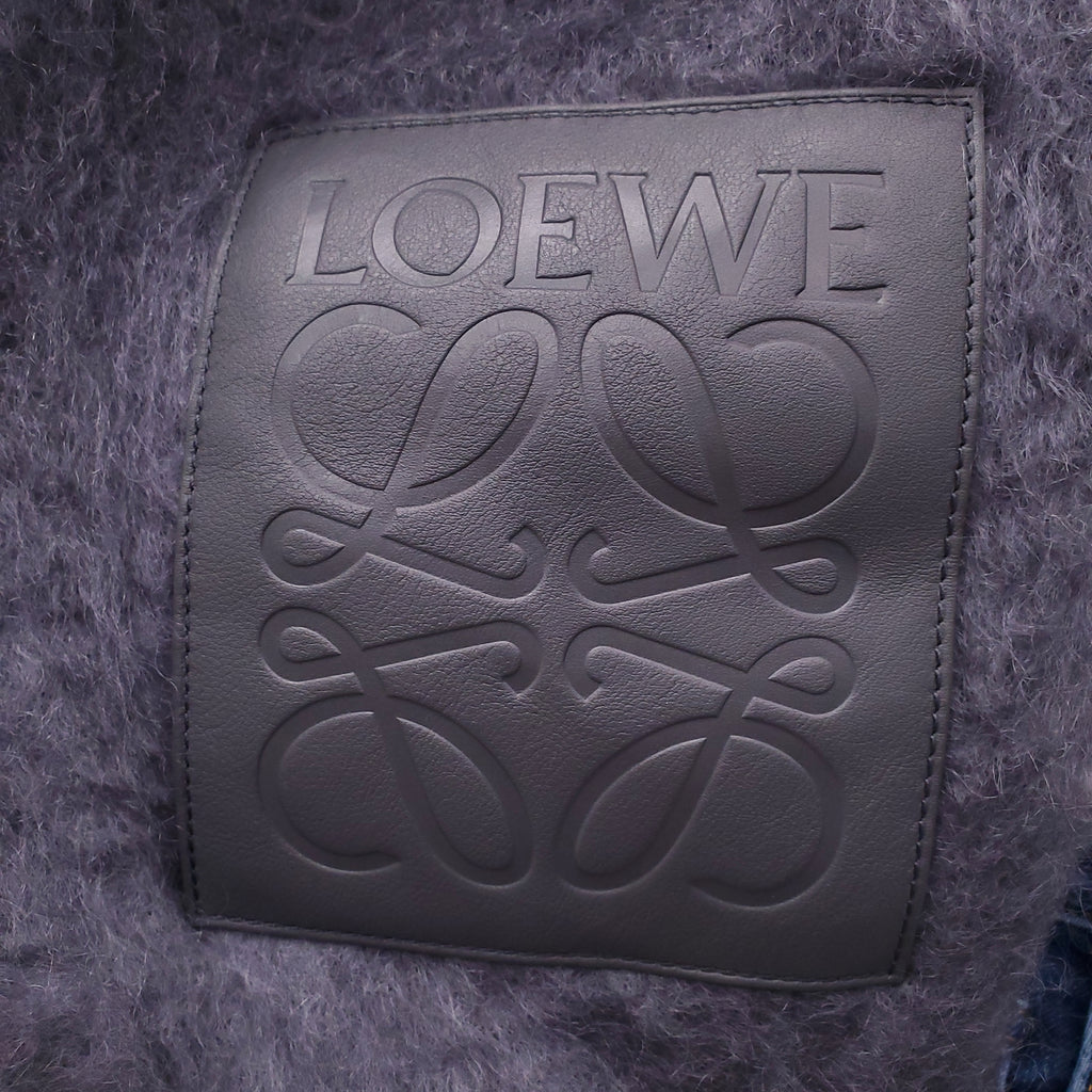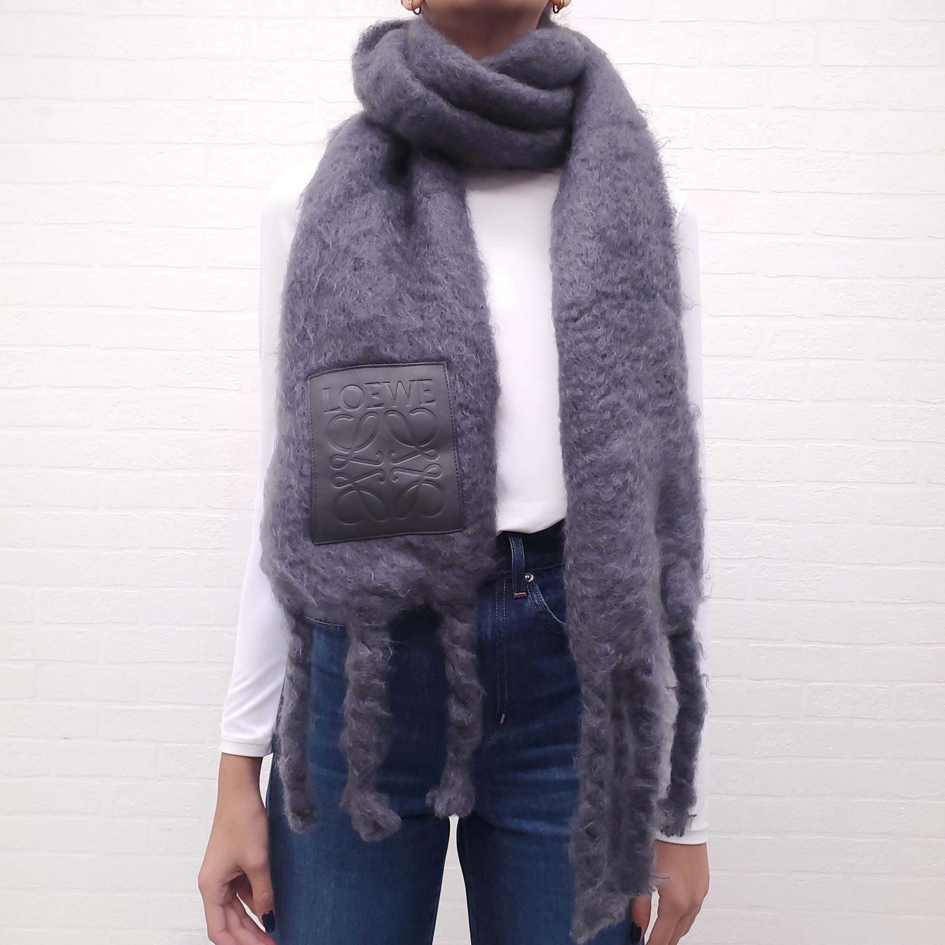 LOEWE GREY MOHAIR BLEND SCARF WITH LEATHER LOGO