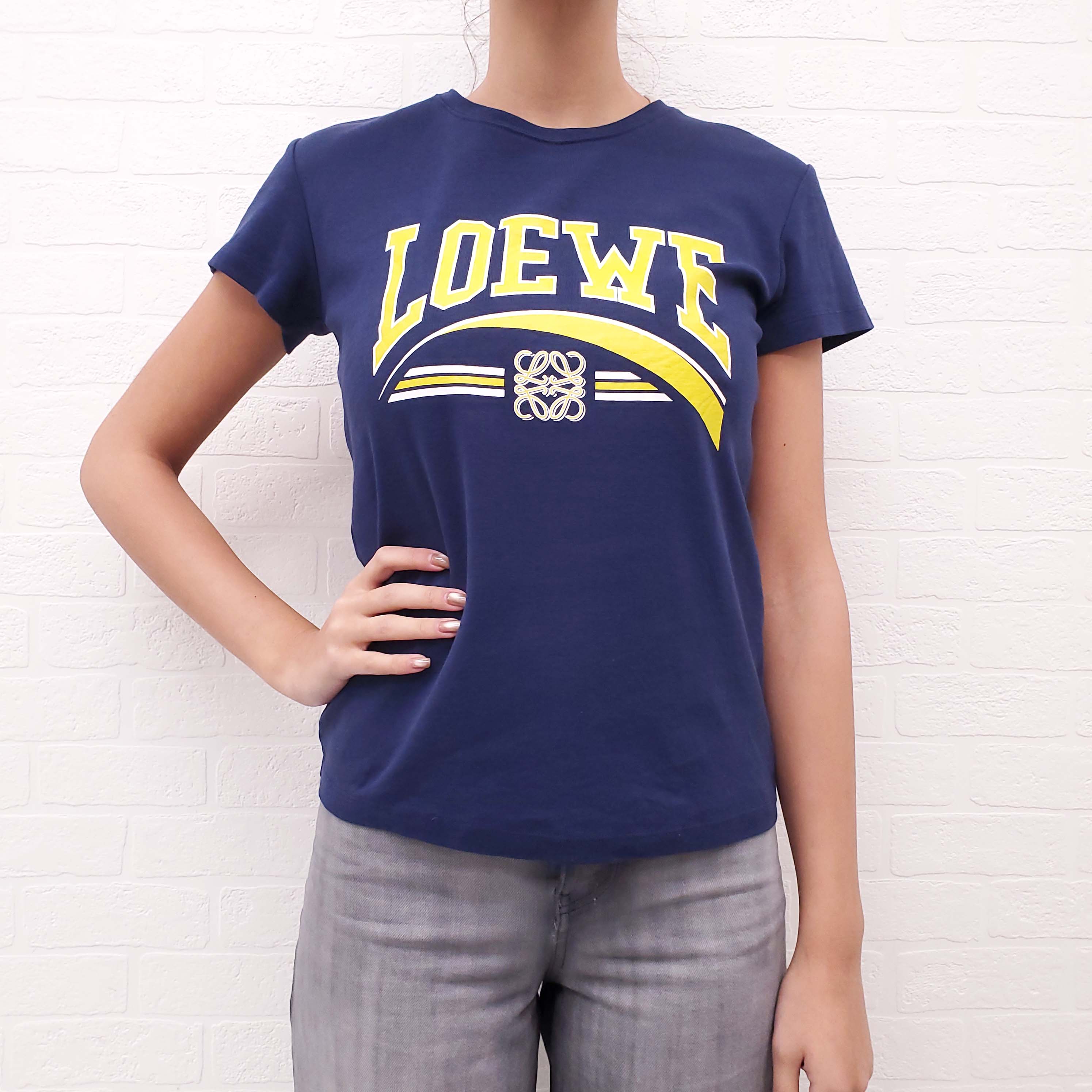 LOEWE NAVY AND YELLOW LOGO T-SHIRT - SIZE XS