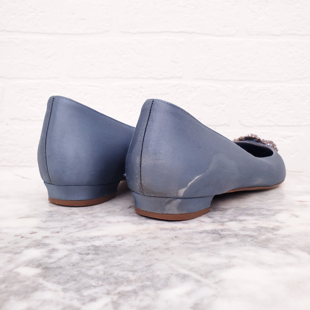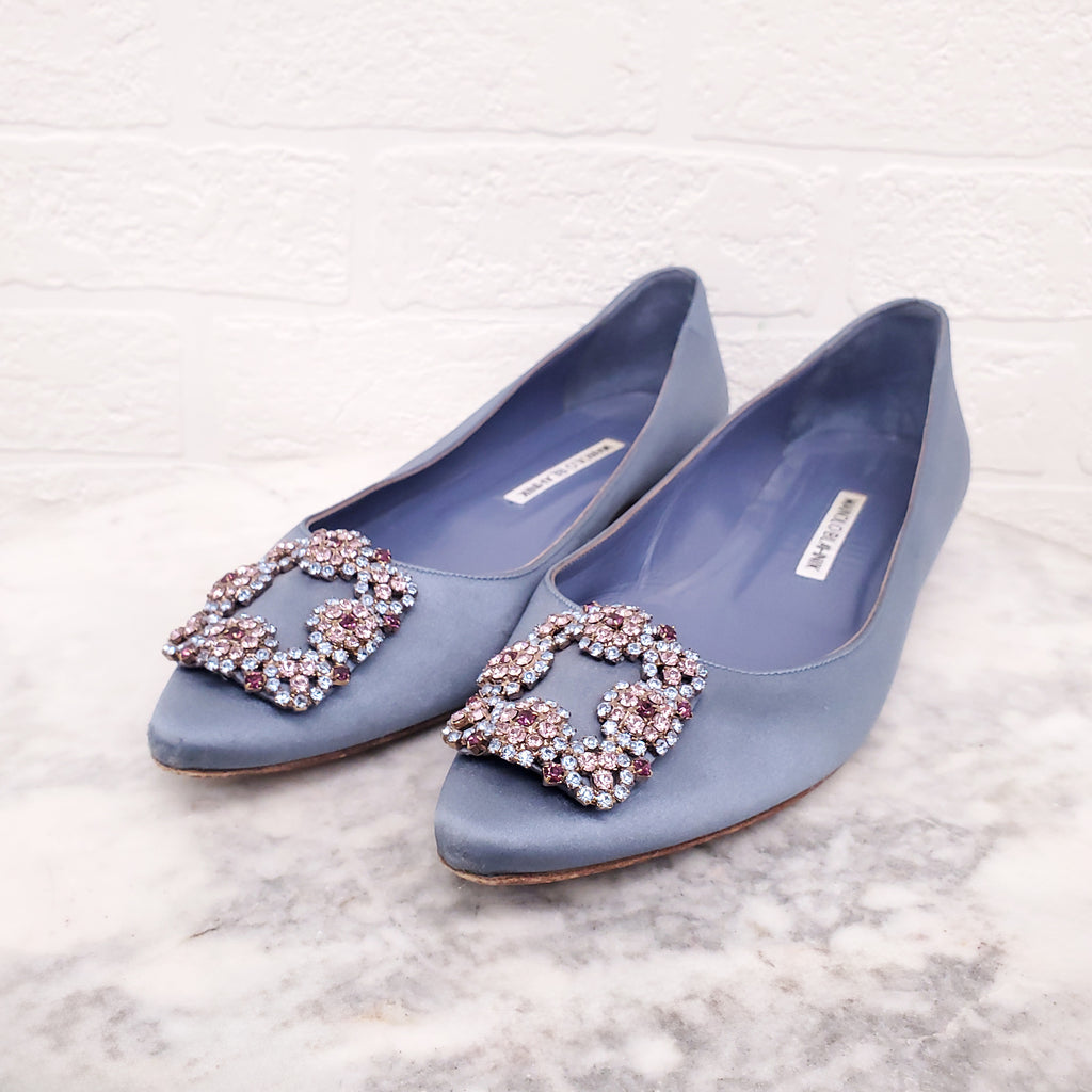 MANOLO BLAHNIK BLUE FLORAL HANGISI FLATS - SIZE 38.5