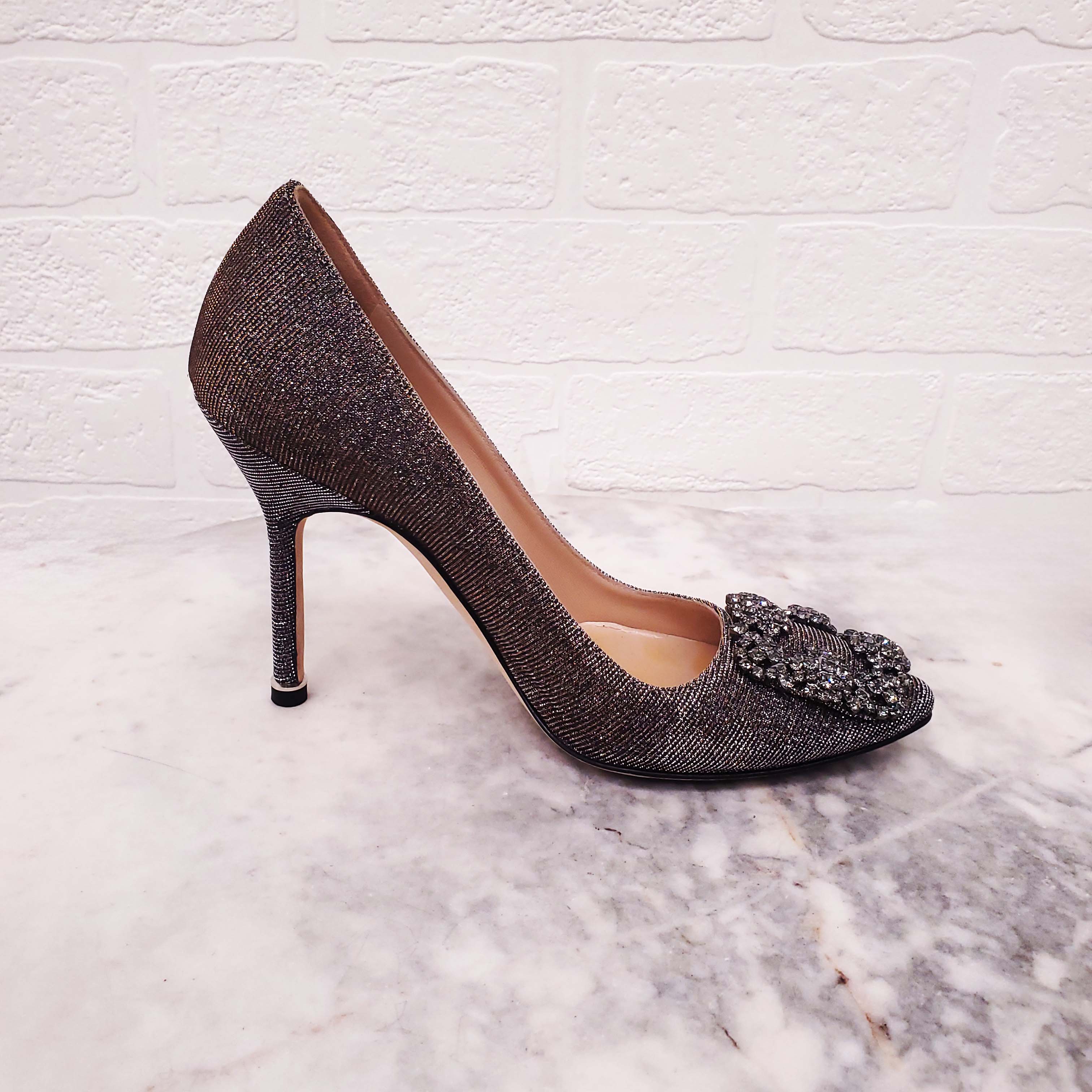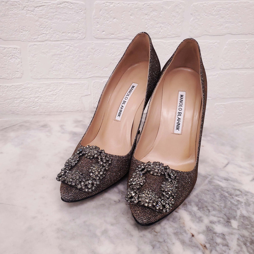 MANOLO BLAHNIK METALLIC HANGISI HEELS - SIZE 35.5
