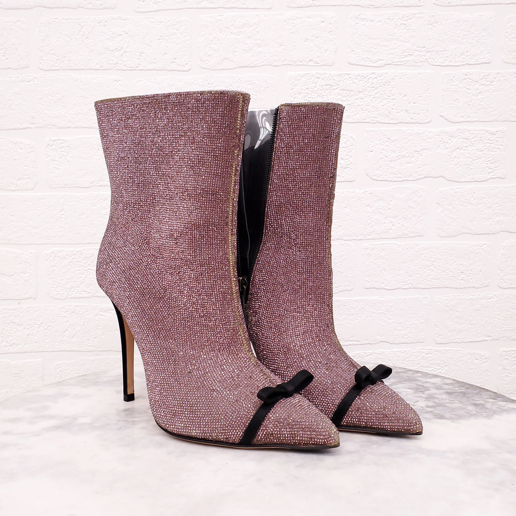 MARCO DE VINCENZO PINK CRYSTAL HEELED BOOTIES WITH PVC - SIZE 37
