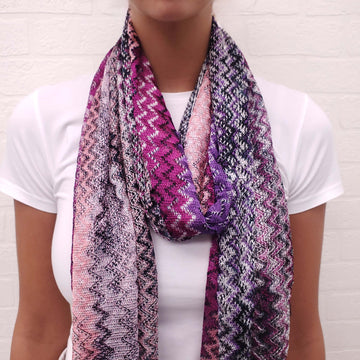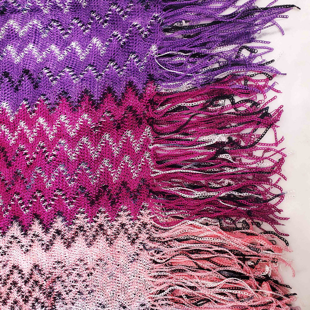 MISSONI PURPLE AND PINK METALLIC KNIT CHEVRON SCARF
