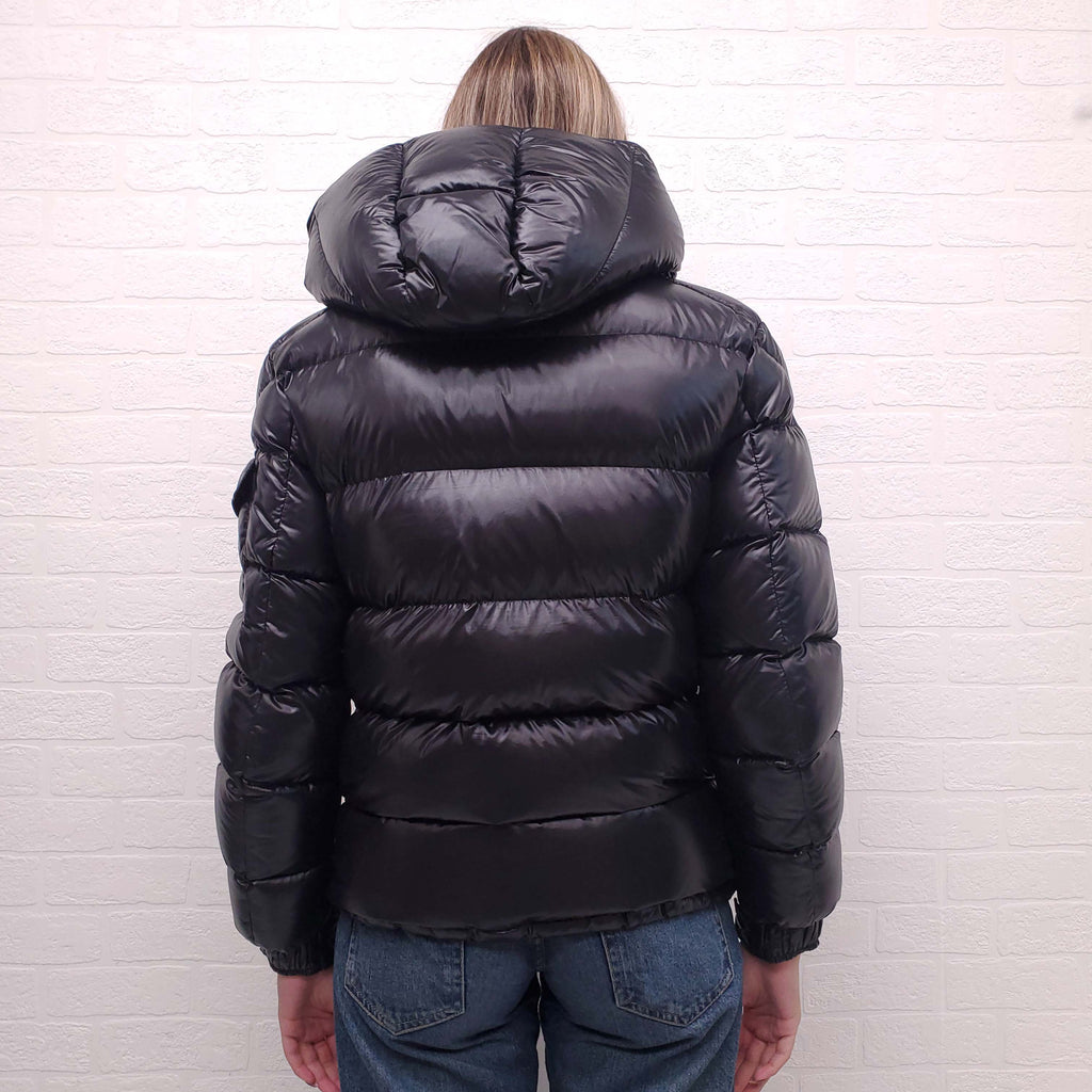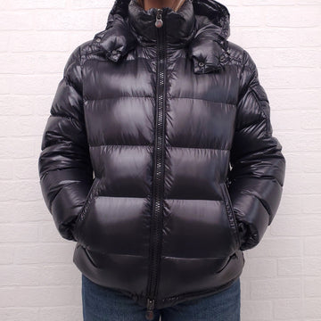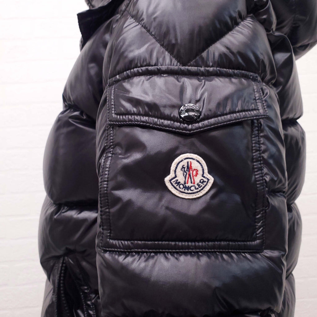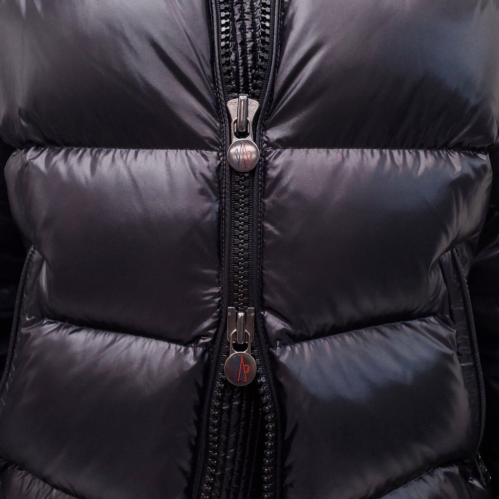 MONCLER BLACK PUFFER JACKET WITH LOGO - SIZE 1/S