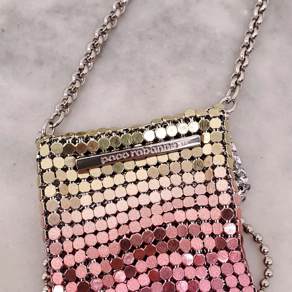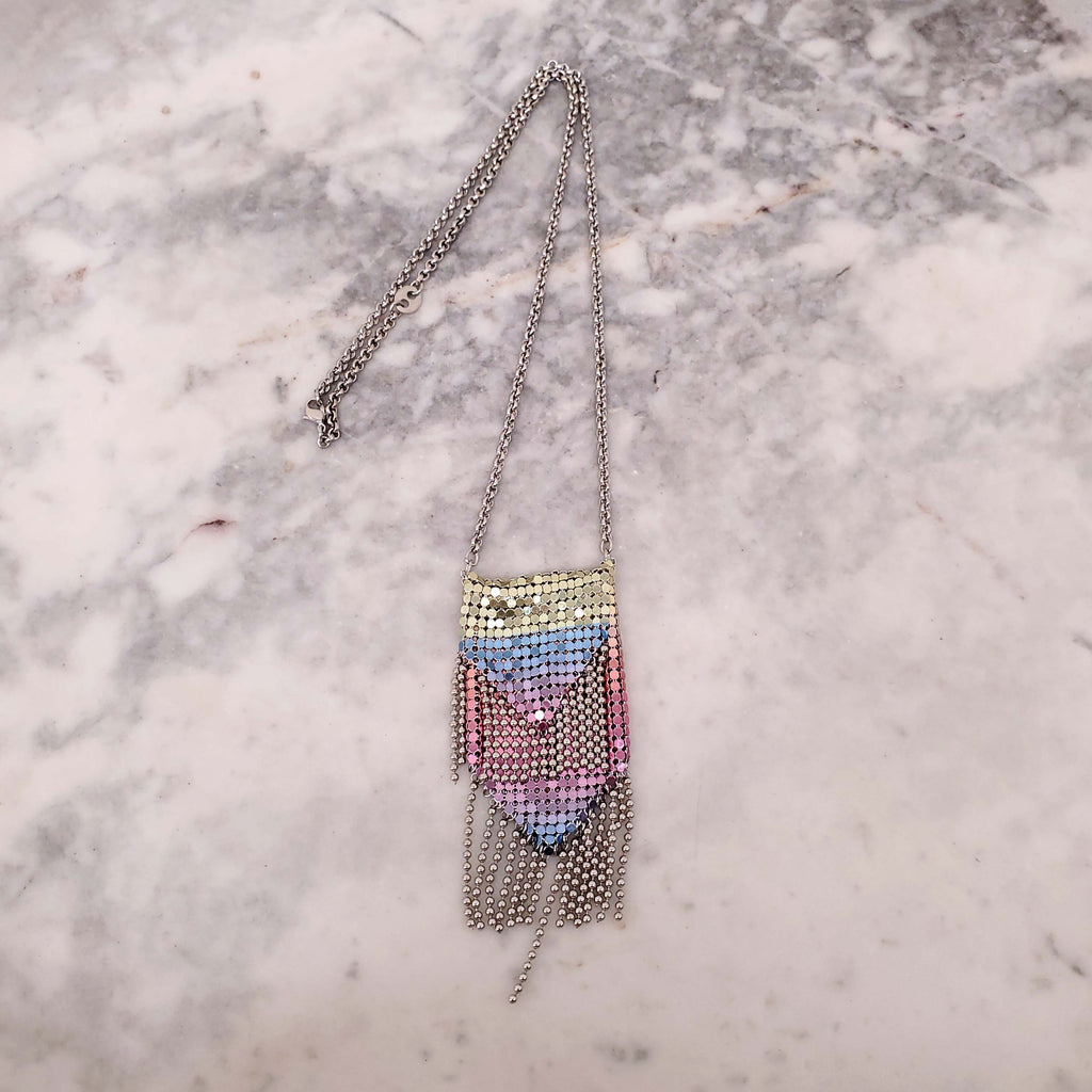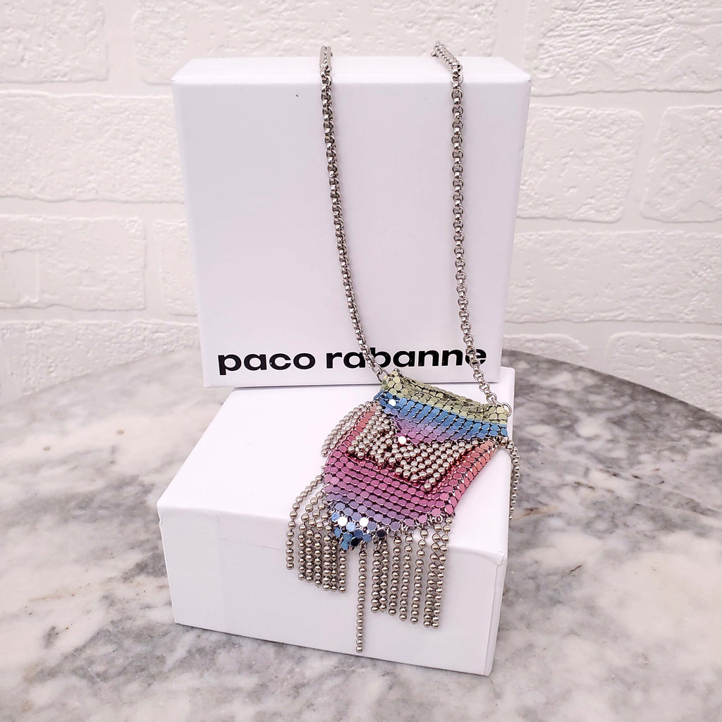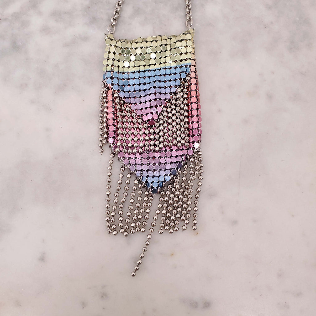 PACO RABANNE MULTI-COLOUR FRINGE CHAINMAIL POUCH NECKLACE