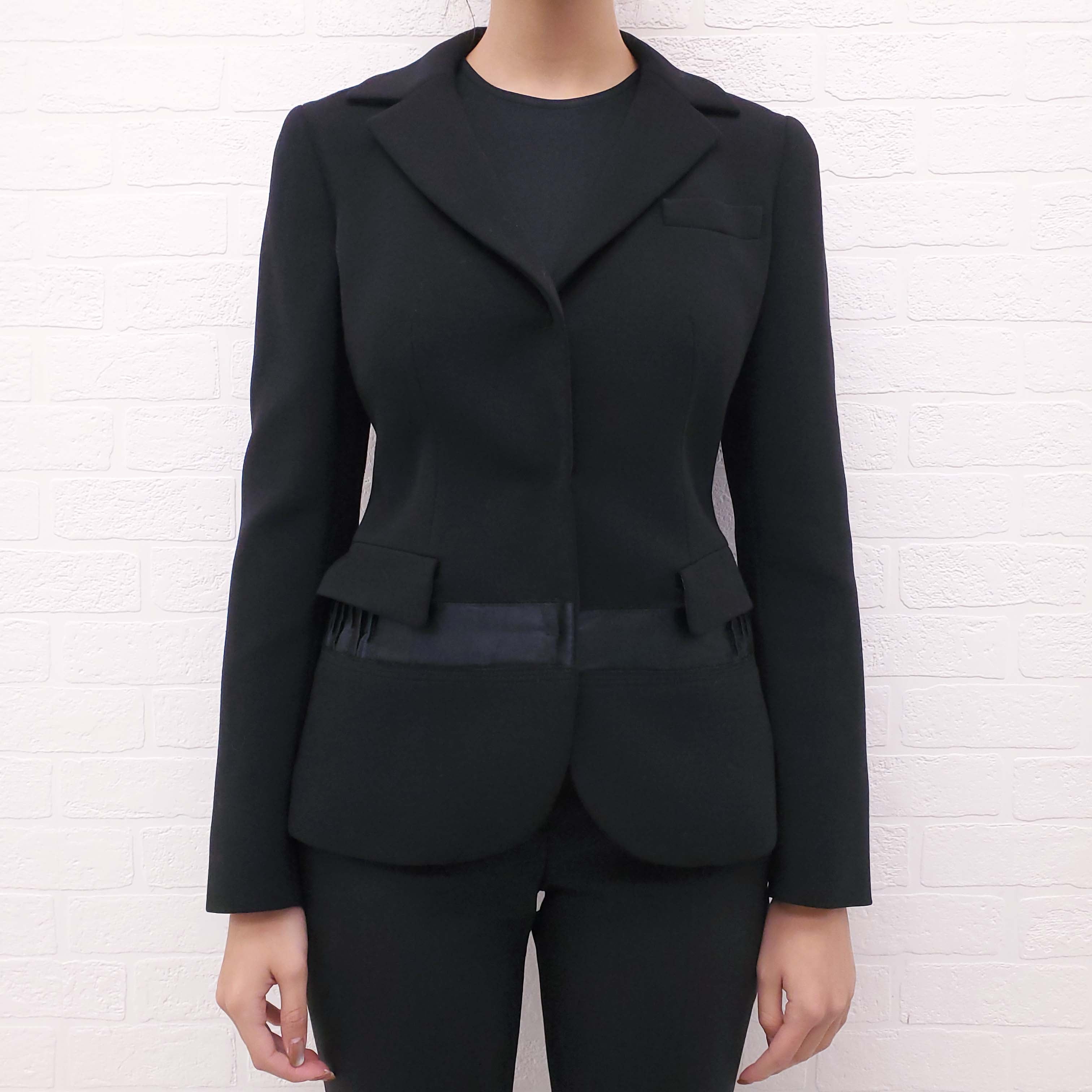 PRADA BLACK BLAZER WITH SILK RIBBON DETAIL - SIZE 40