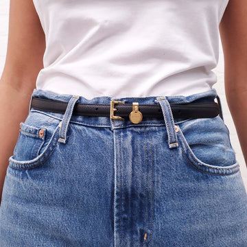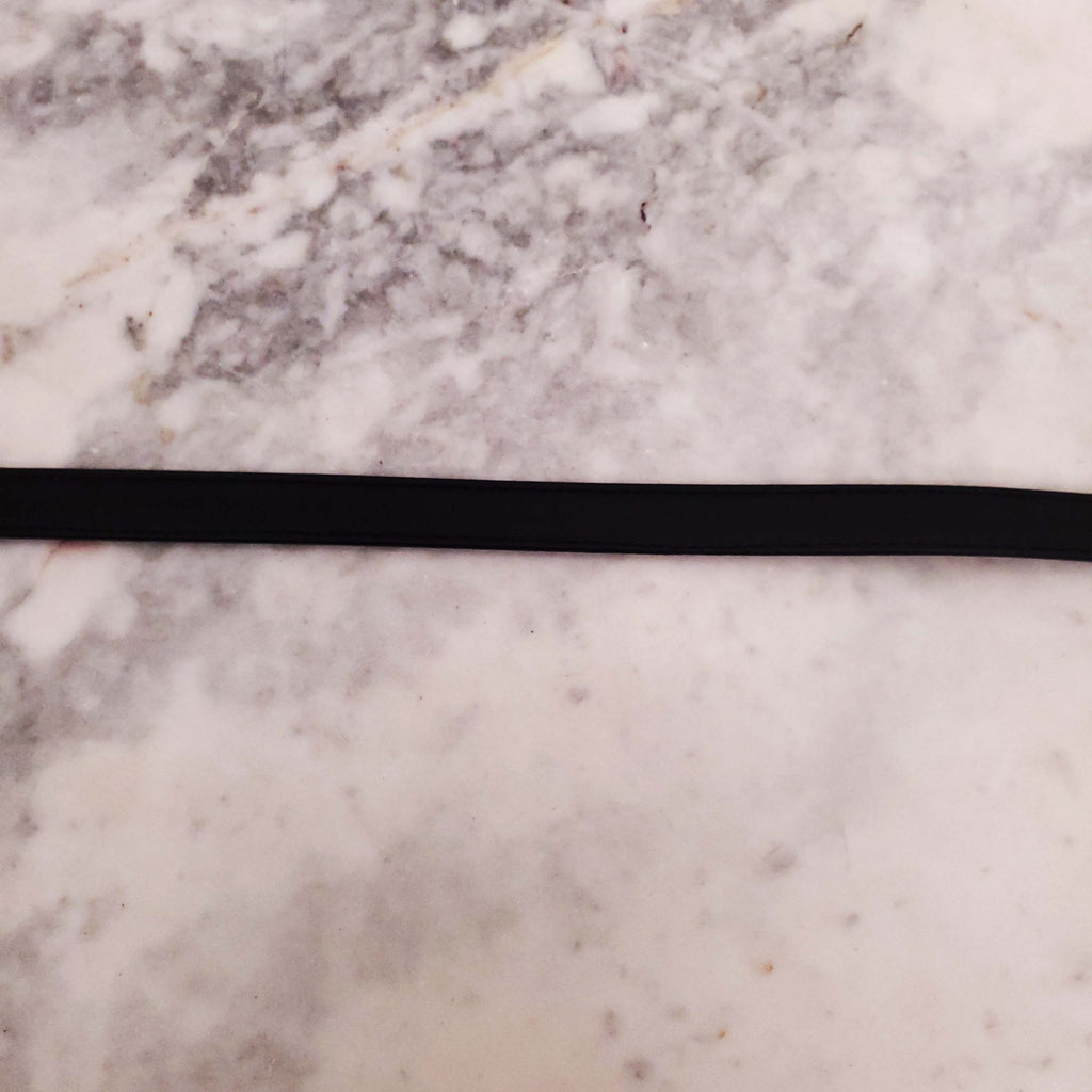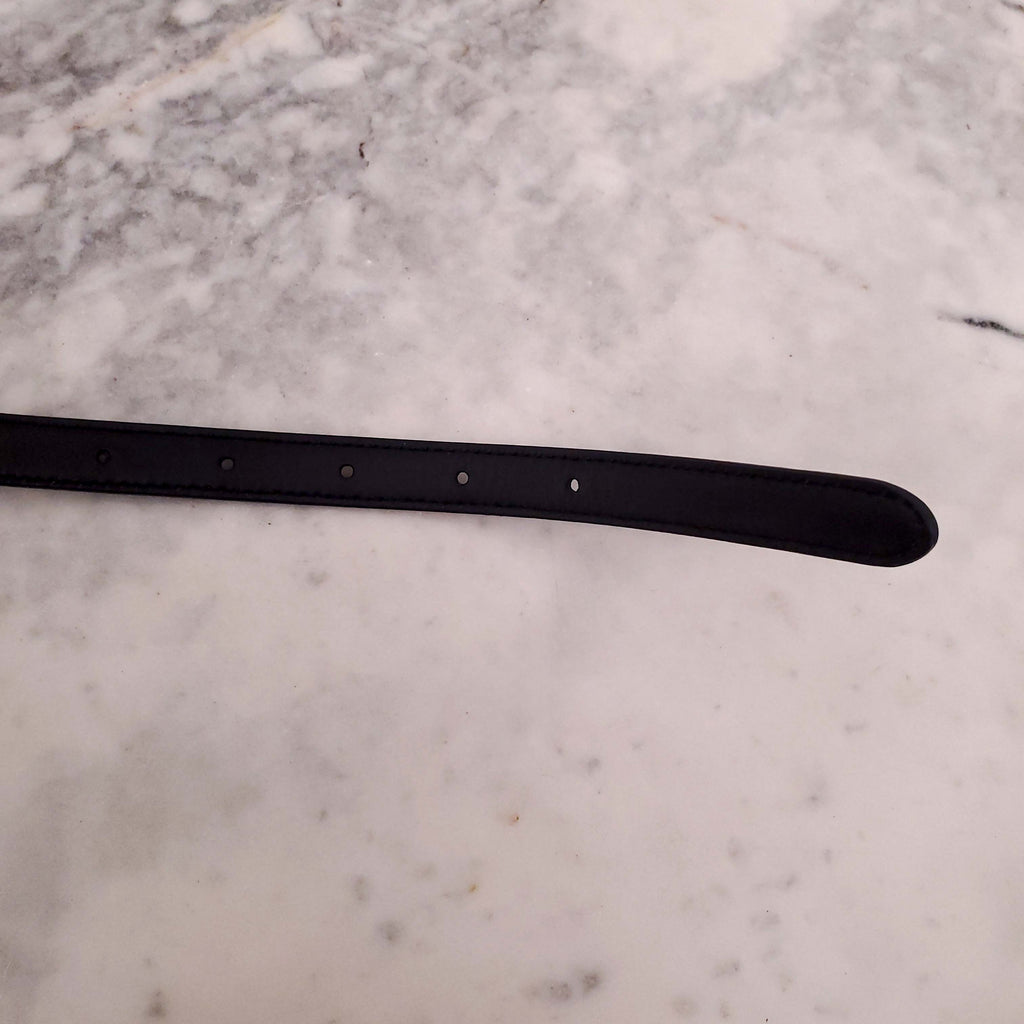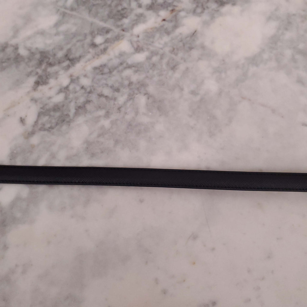 PRADA BLACK SAFFIANO LEATHER BELT WITH GOLD LOGO CHARM - SIZE 80