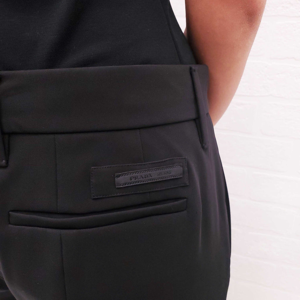 PRADA BLACK FLARE TROUSERS WITH LOGO - SIZE 42