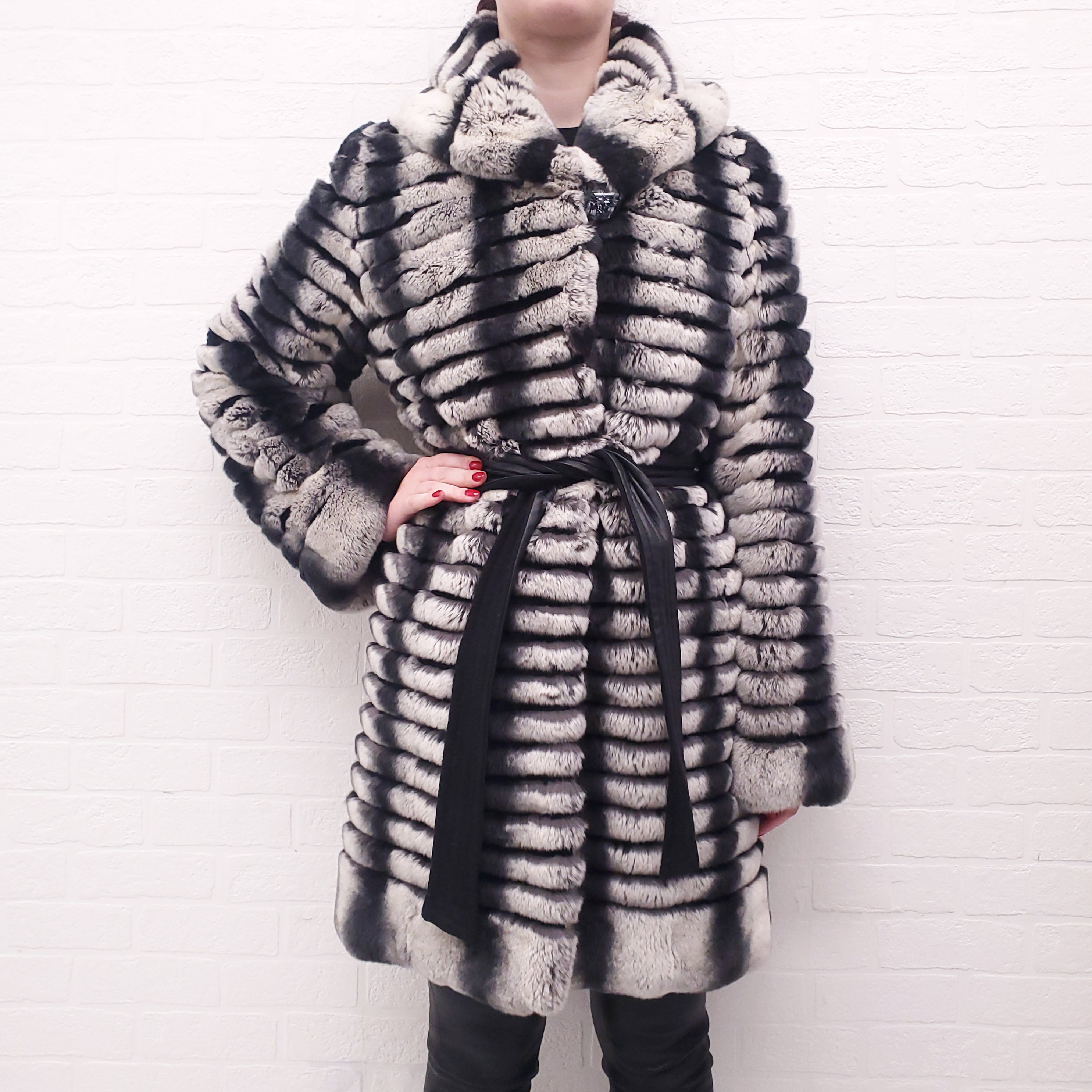 RABBIT FUR JACKET WITH BELT DETAIL - SIZE S