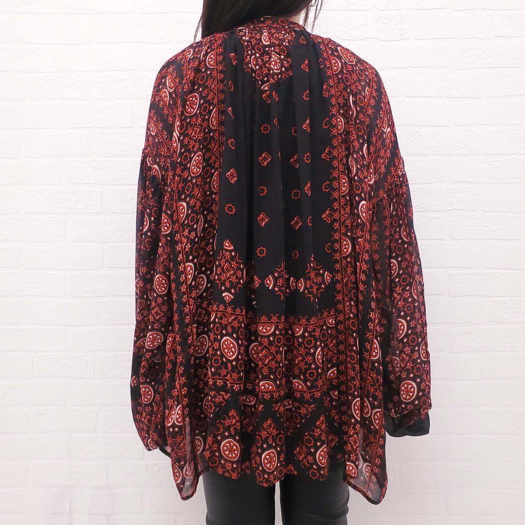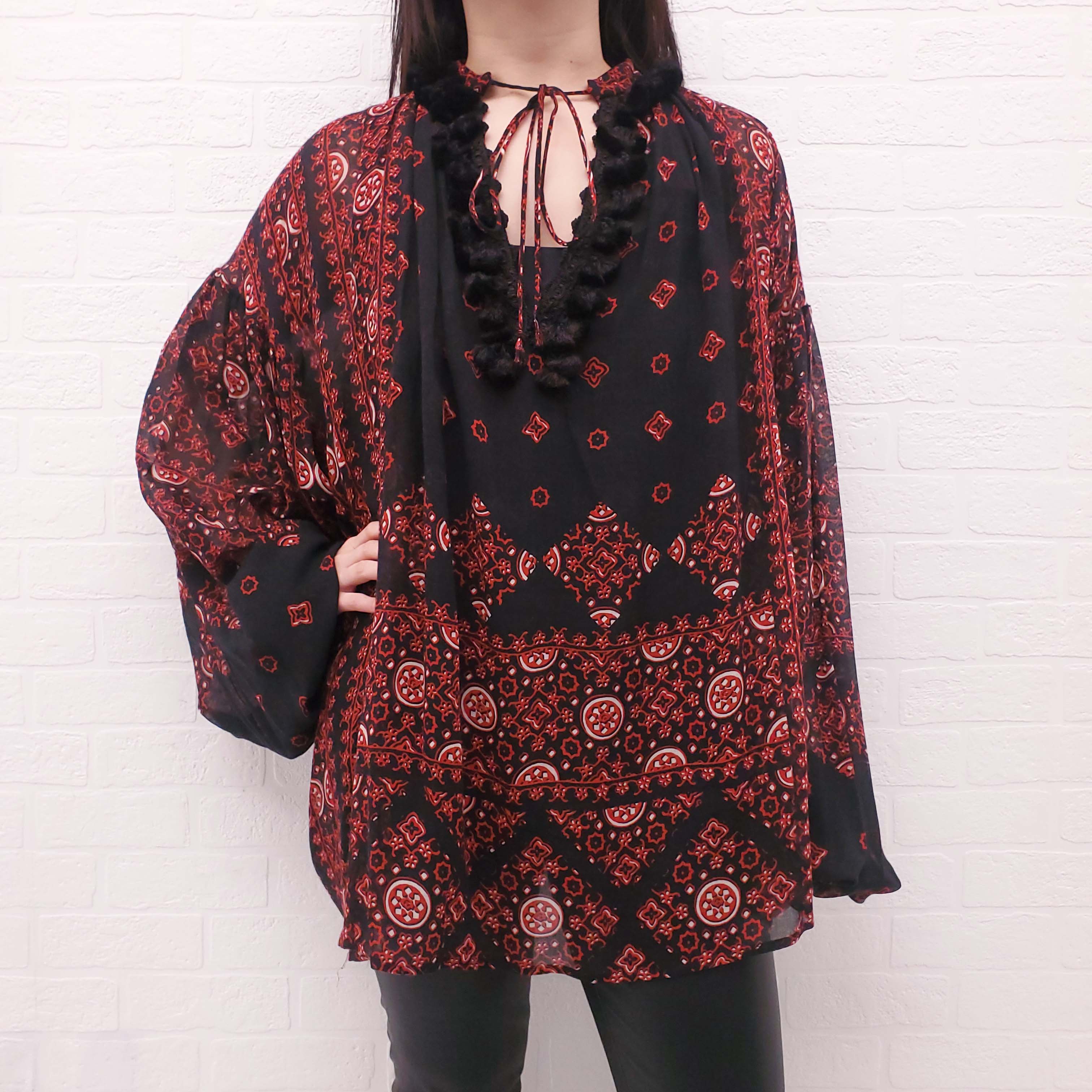 SAINT LAURENT BLACK AND RED PAISLEY BLOUSE WITH TIE - SIZE 40