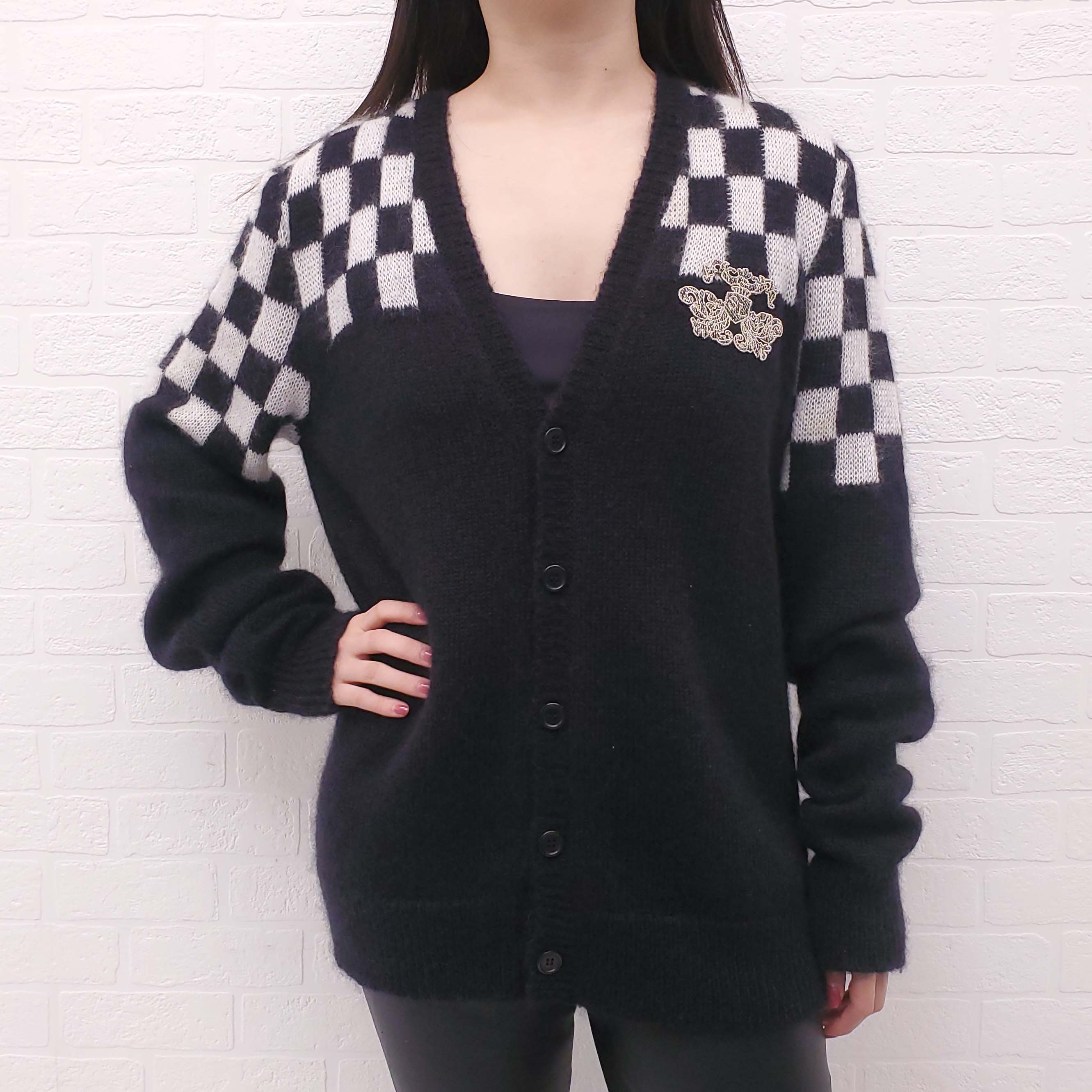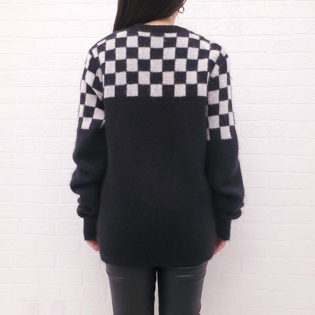SAINT LAURENT BLACK AND WHITE CHECKERED CARDIGAN - SIZE M