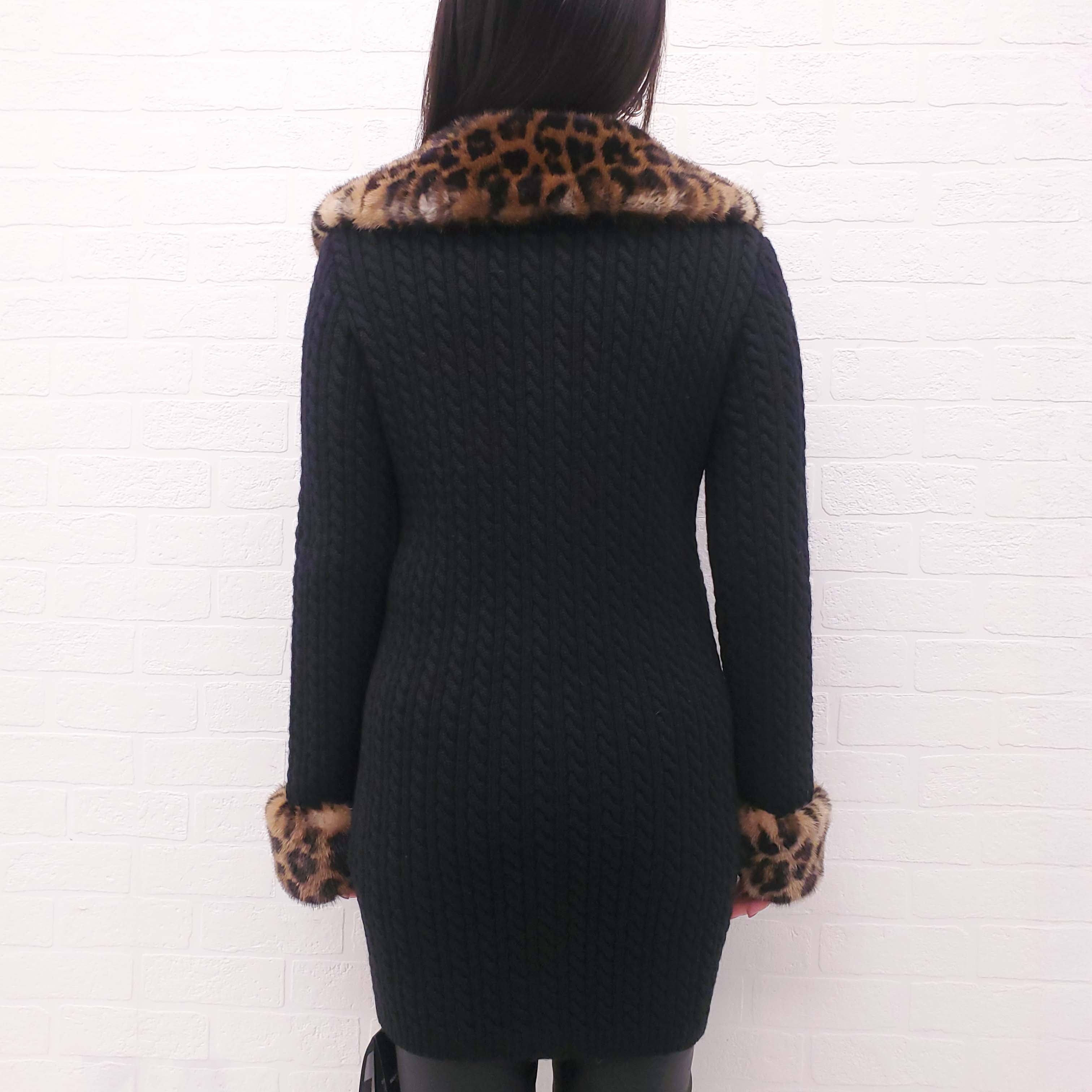 SAINT LAURENT BLACK WOOL CABLE KNIT CARDIGAN WITH LEOPARD MINK COLLAR AND CUFFS - SIZE L