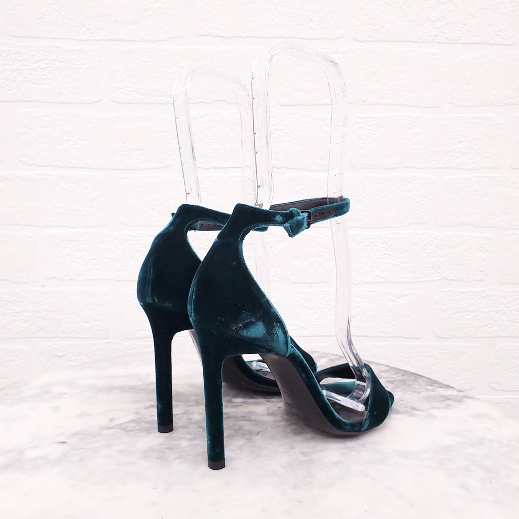 SAINT LAURENT GREEN VELVET HEELS - SIZE 35.5