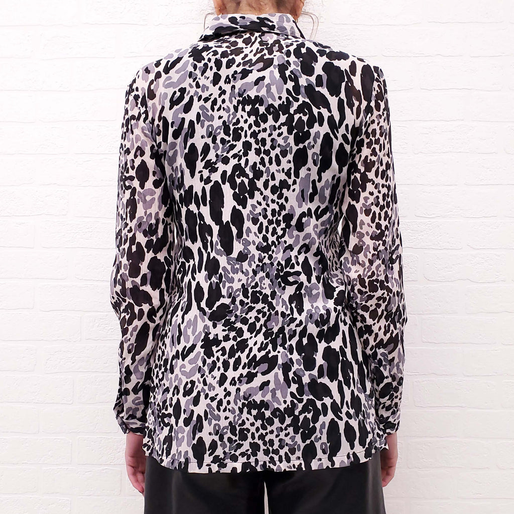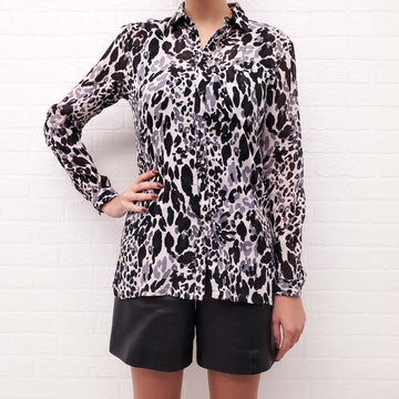 SAINT LAURENT GREY AND BLACK LEOPARD BLOUSE - SIZE 34