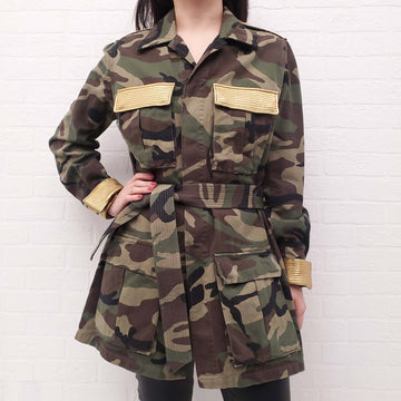 SAINT LAURENT X HEDI SLIMANE CAMO GOLD TRIMMED JACKET - SIZE 44