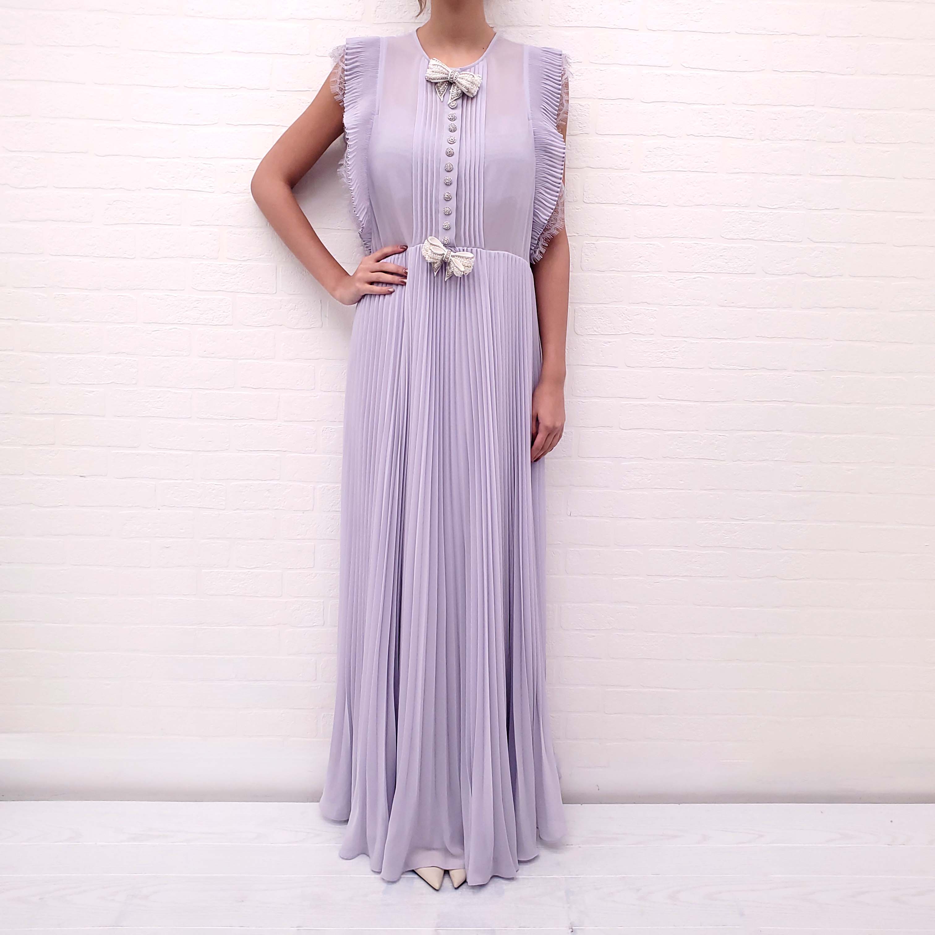 SELF-PORTRAIT LILAC CHIFFON RUFFLE MAXI DRESS - SIZE 8
