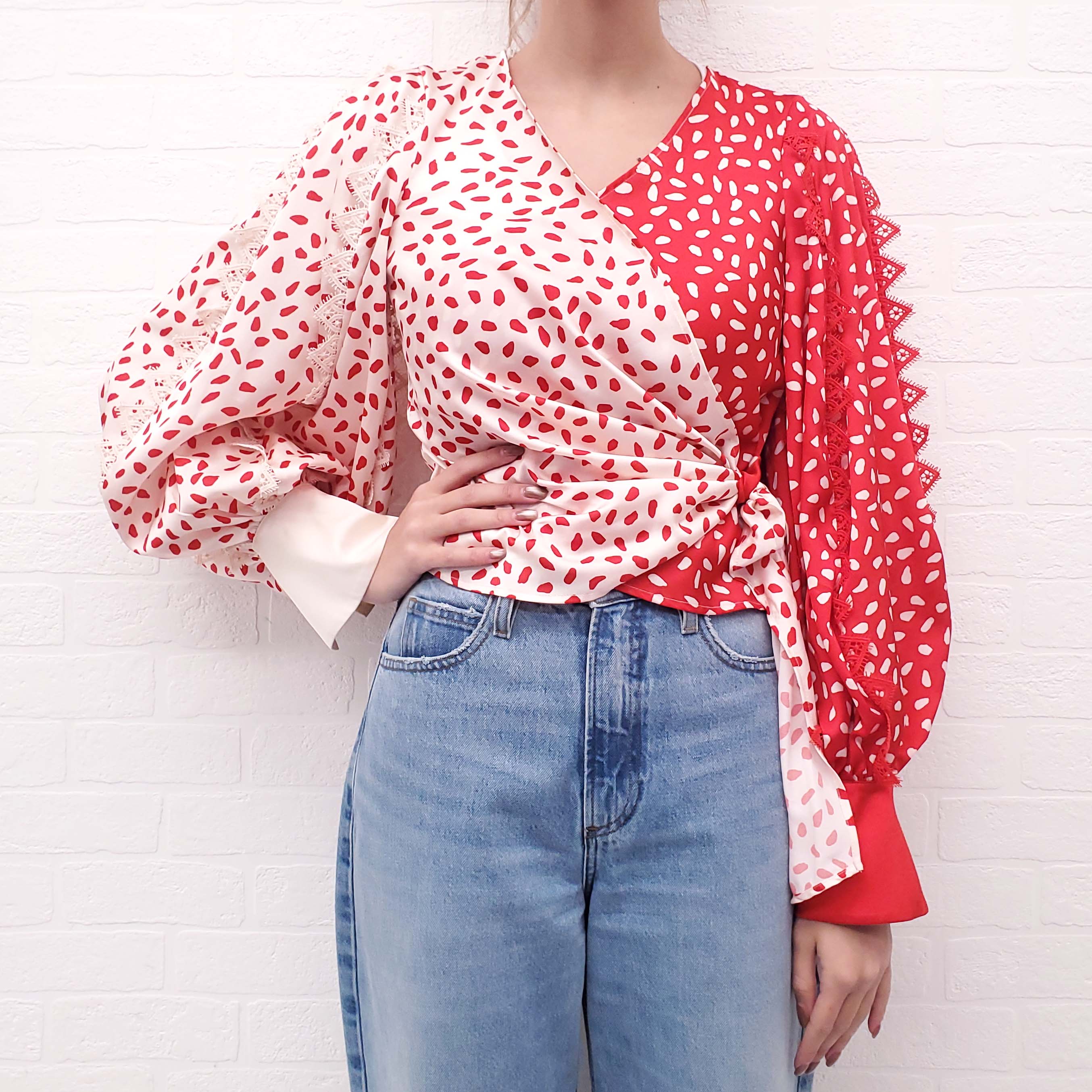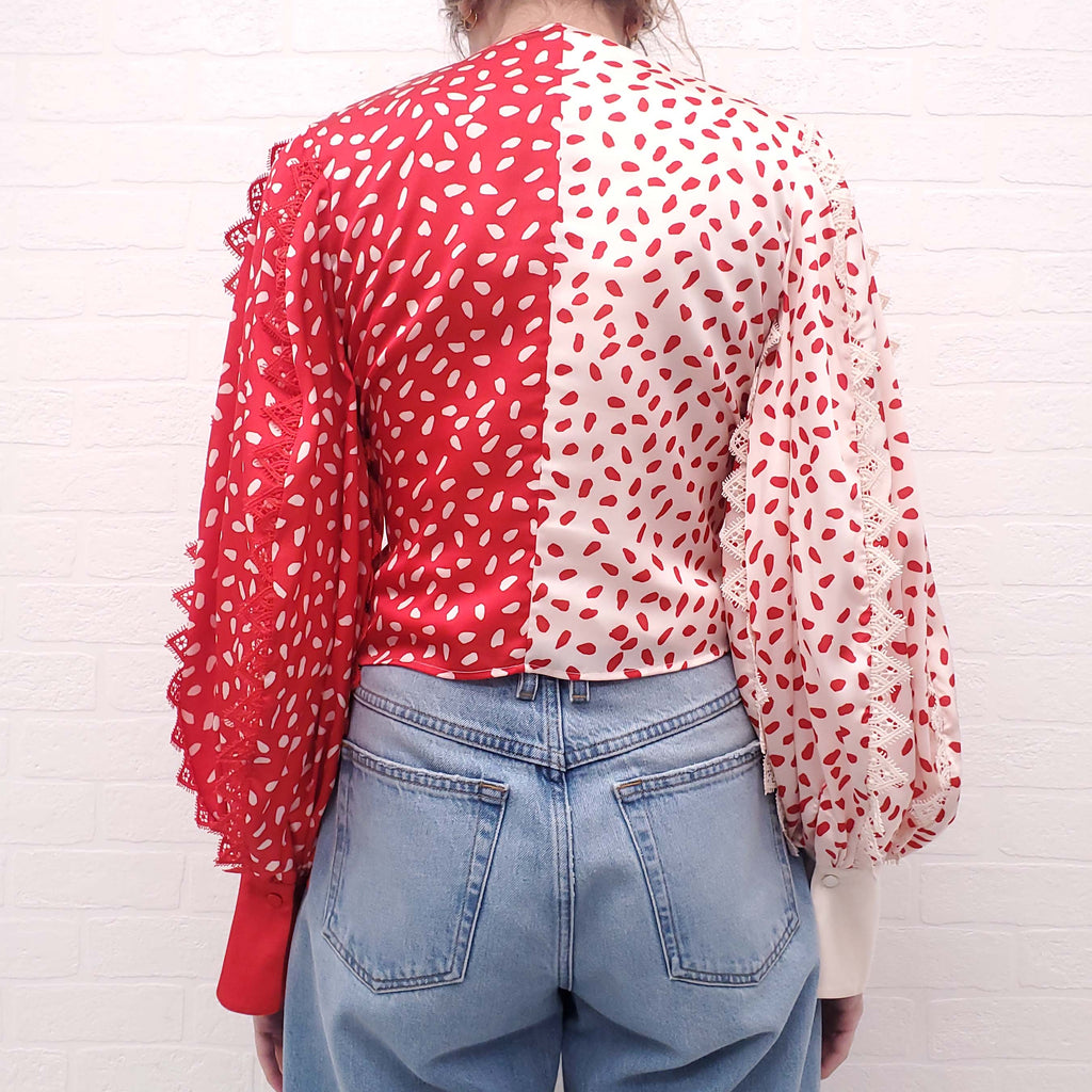 SELF-PORTRAIT RED AND CREAM PATTERNED BLOUSE - SIZE 4