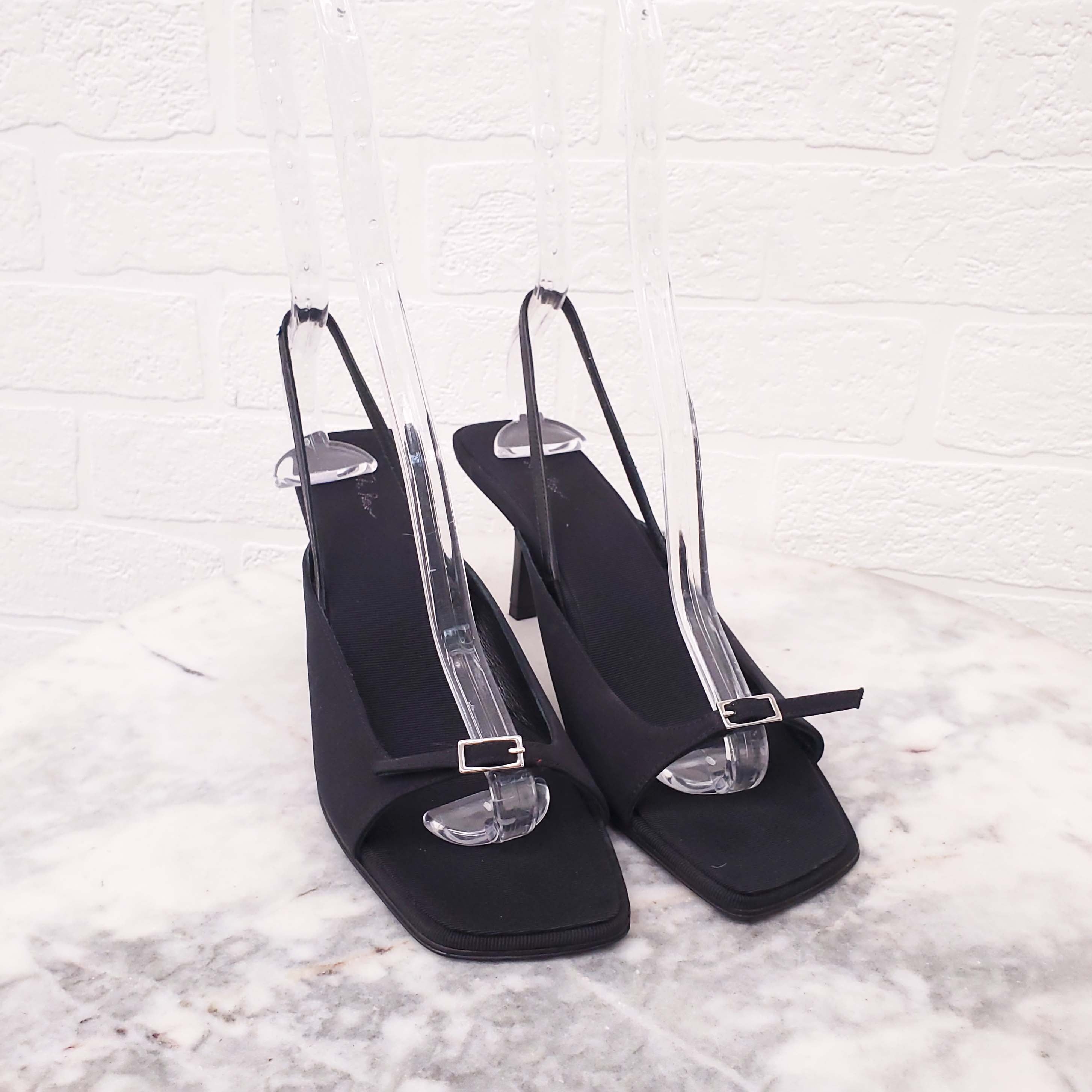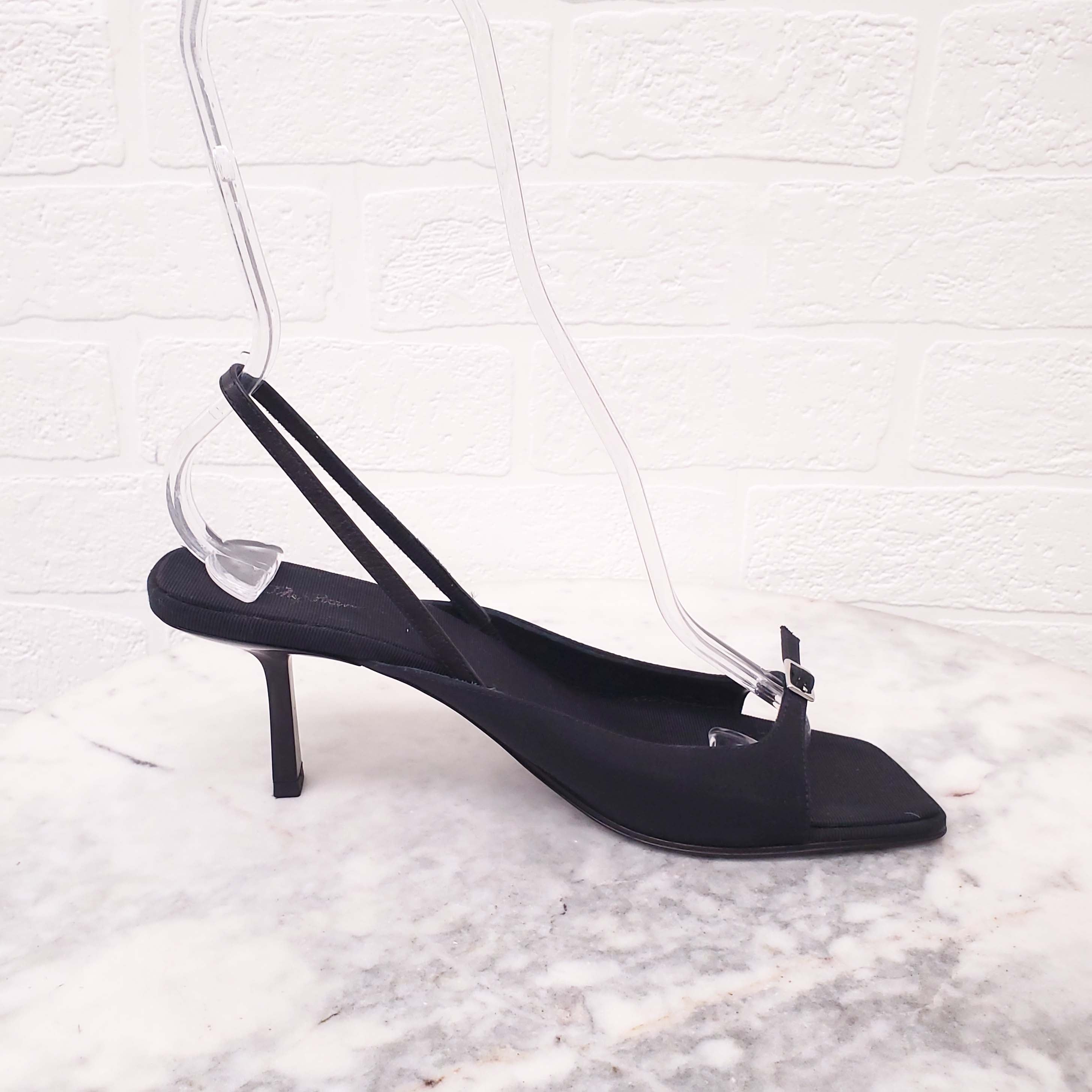 THE ROW BLACK SLINGBACK KITTEN HEELS WITH BUCKLE DETAIL - SIZE 38